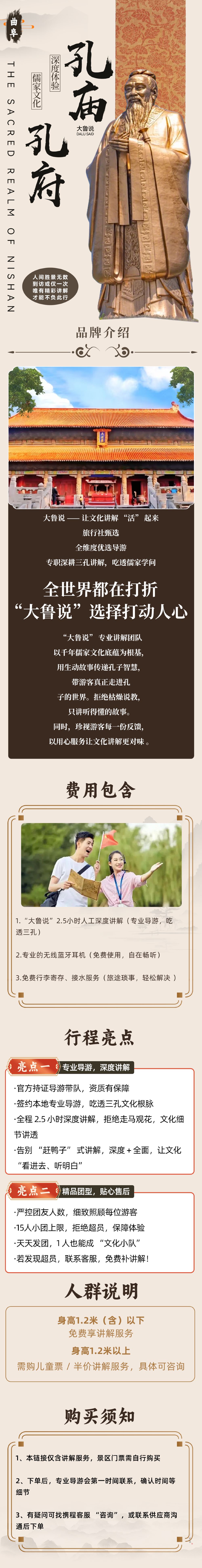 曲阜三孔半日行【大鲁说】国庆特惠·孔庙孔府深度讲解+多场次【【玩的嗨心】免费提供高清蓝牙无线耳麦听讲解,抛开嘈杂聆听历史的变迁和儒家两千多年历史文化】