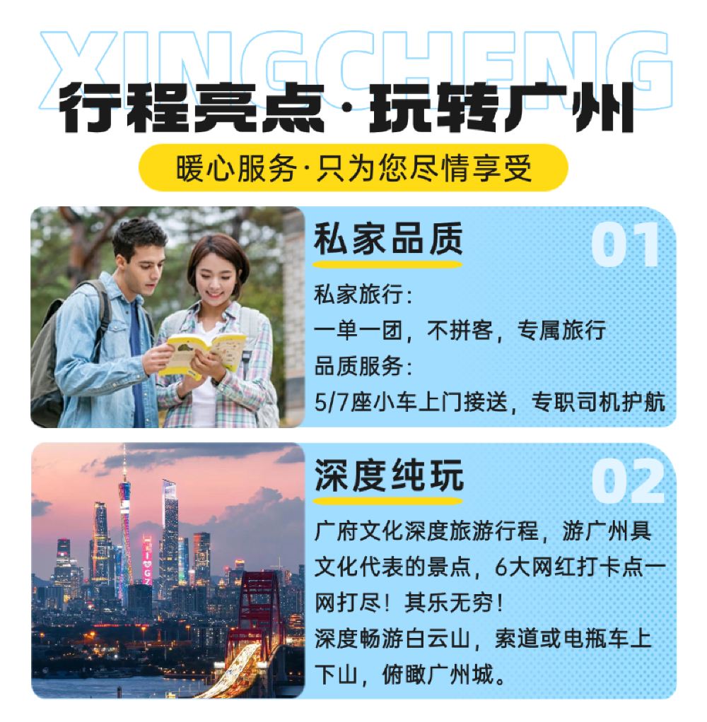 私家小团上门接送|广州代表景点+白云山含缆车【可选珠江夜游】【私家旅行:一单一团,不拼客,专属旅行; 品质服务:5/7座小车上门接送,专职司机护航】