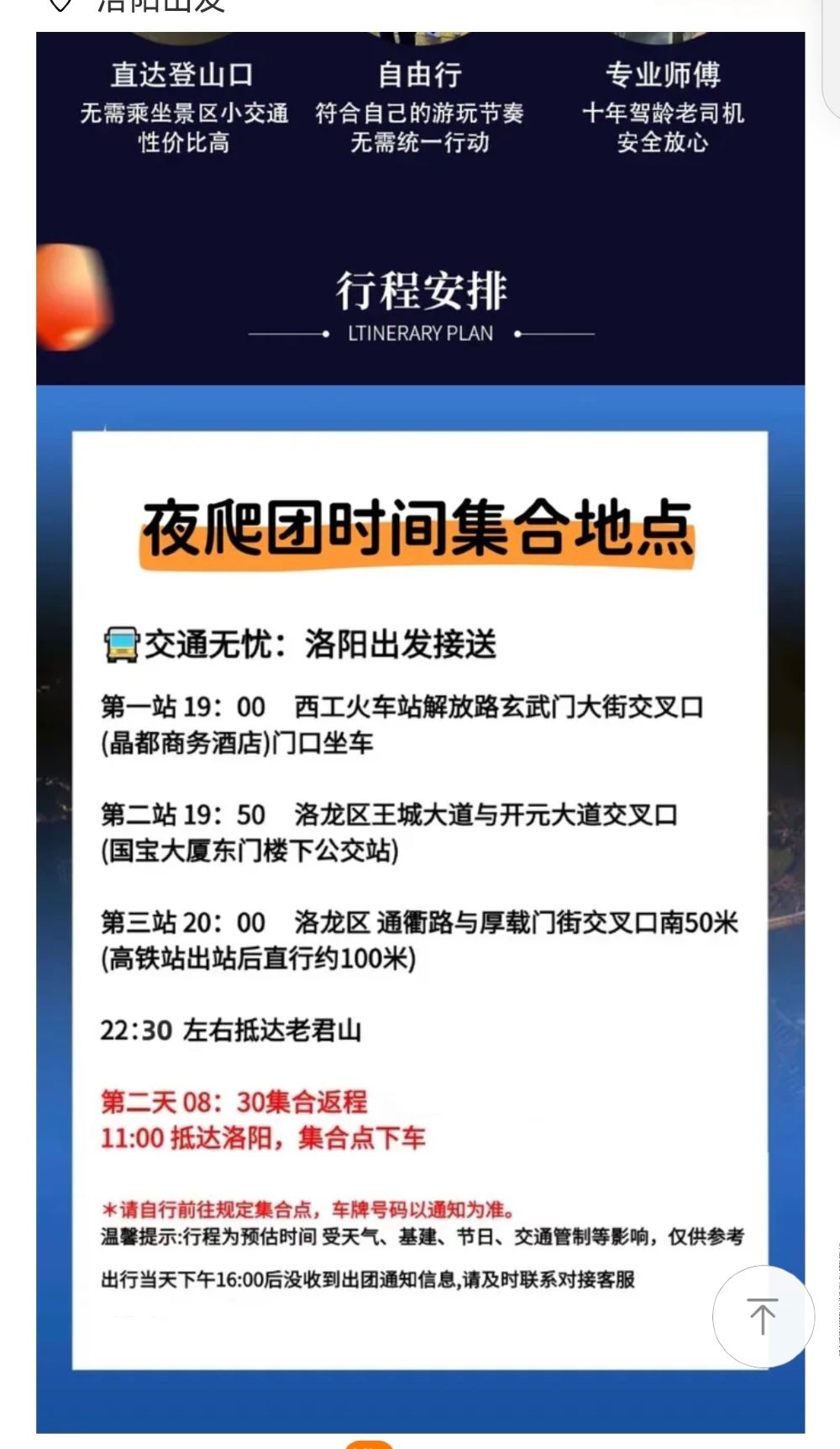 ● 特别提醒:夜爬七天之内仅可预约一次,请确定行程后再预约。