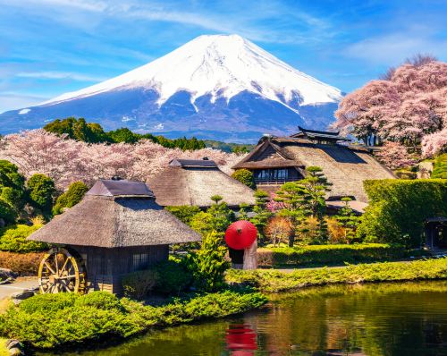 ▲ 【忍野八海】 富士山的雪水流经地层过虑而成的八个清泉。忍野八海以其优美的自然 环境闻名,池水波光潾潾,与美丽的富士山合为一体,美不胜收