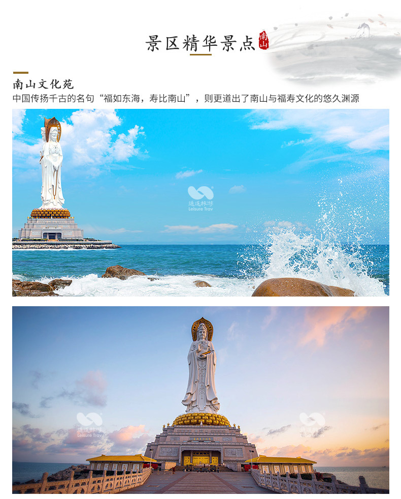 三亚南山文化旅游区+天涯海角一日游【祈福专线+往返接送+门票+可选大小洞天】
