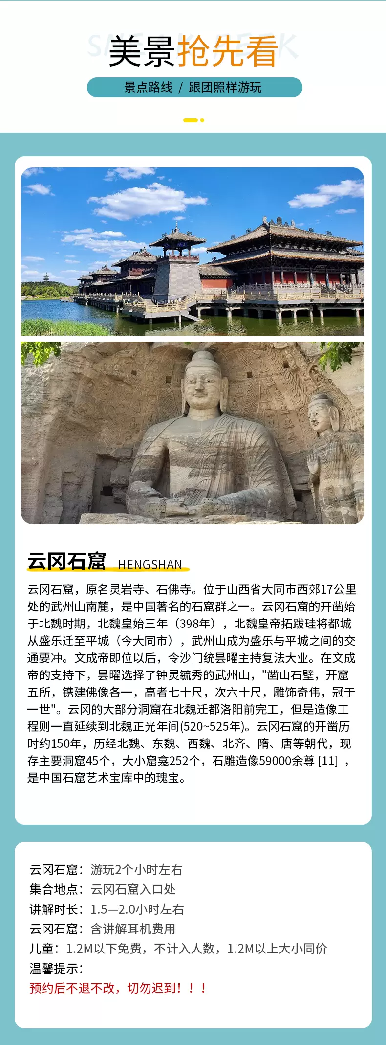 【大同云冈石窟】景区人工讲解【3小时】优秀导游(含耳麦)纯玩团
