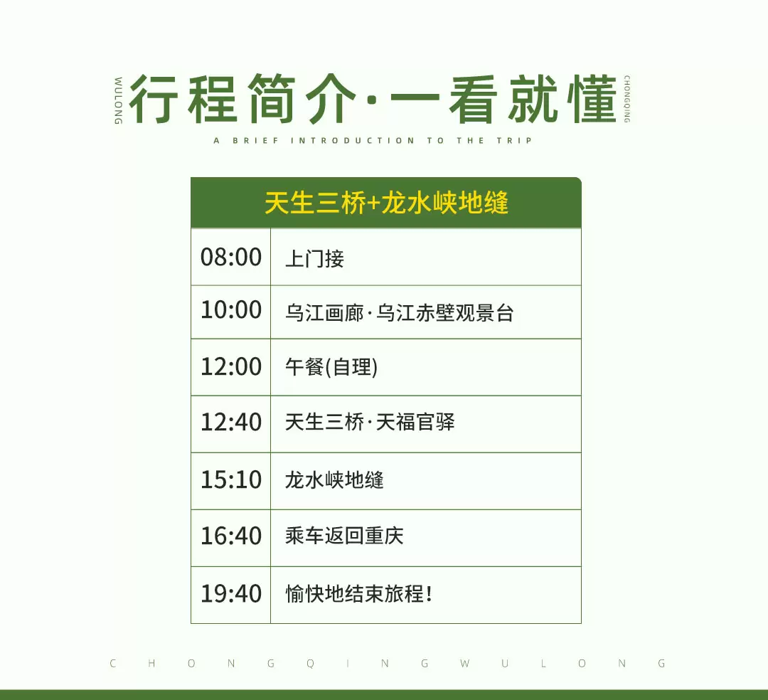 【私家团】重庆武隆天生三桥+龙水峡地缝纯玩一日游·一单一团·不拼团