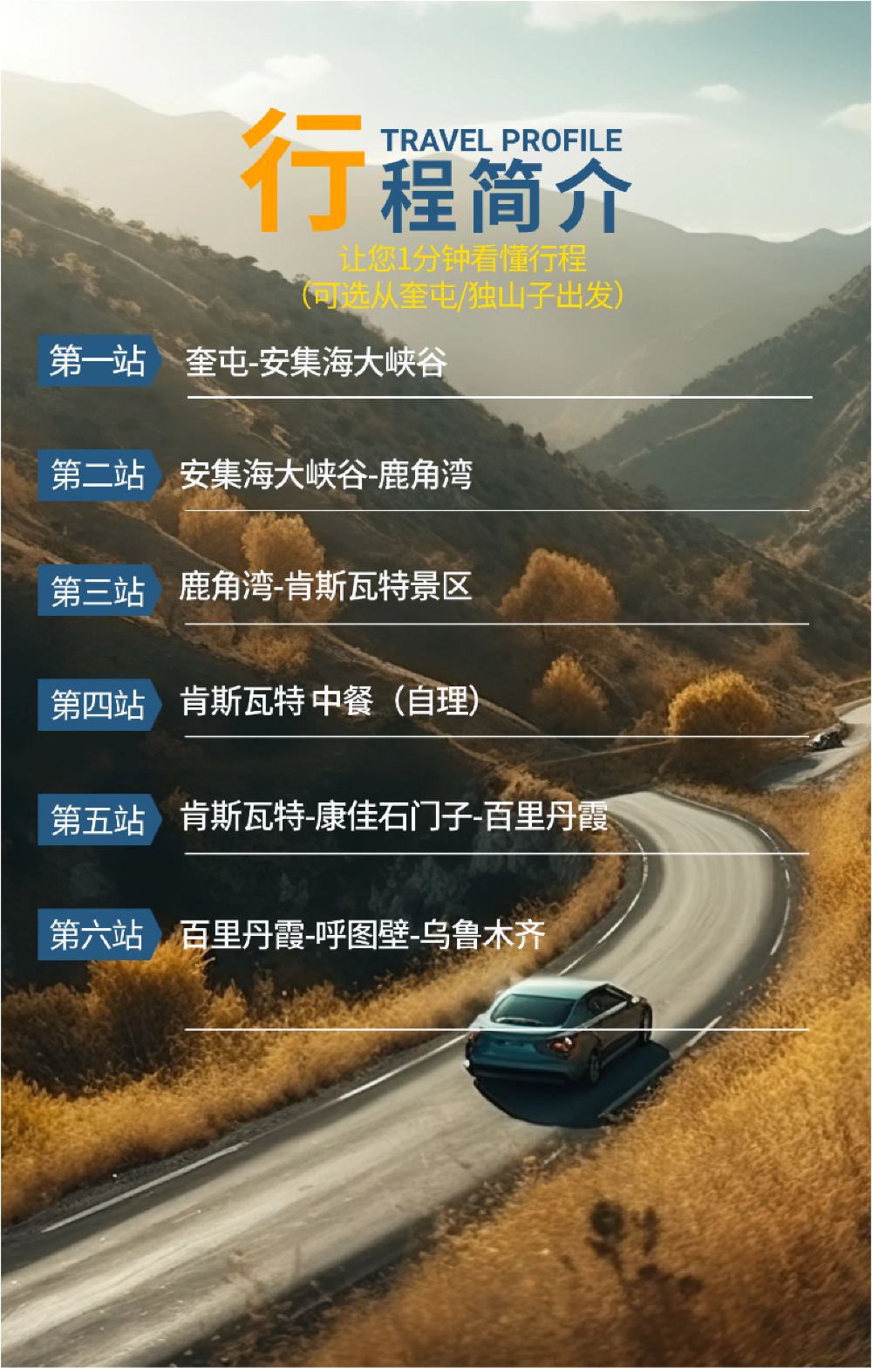 行程B:奎屯独山子出发。结束送乌鲁木齐动车返回