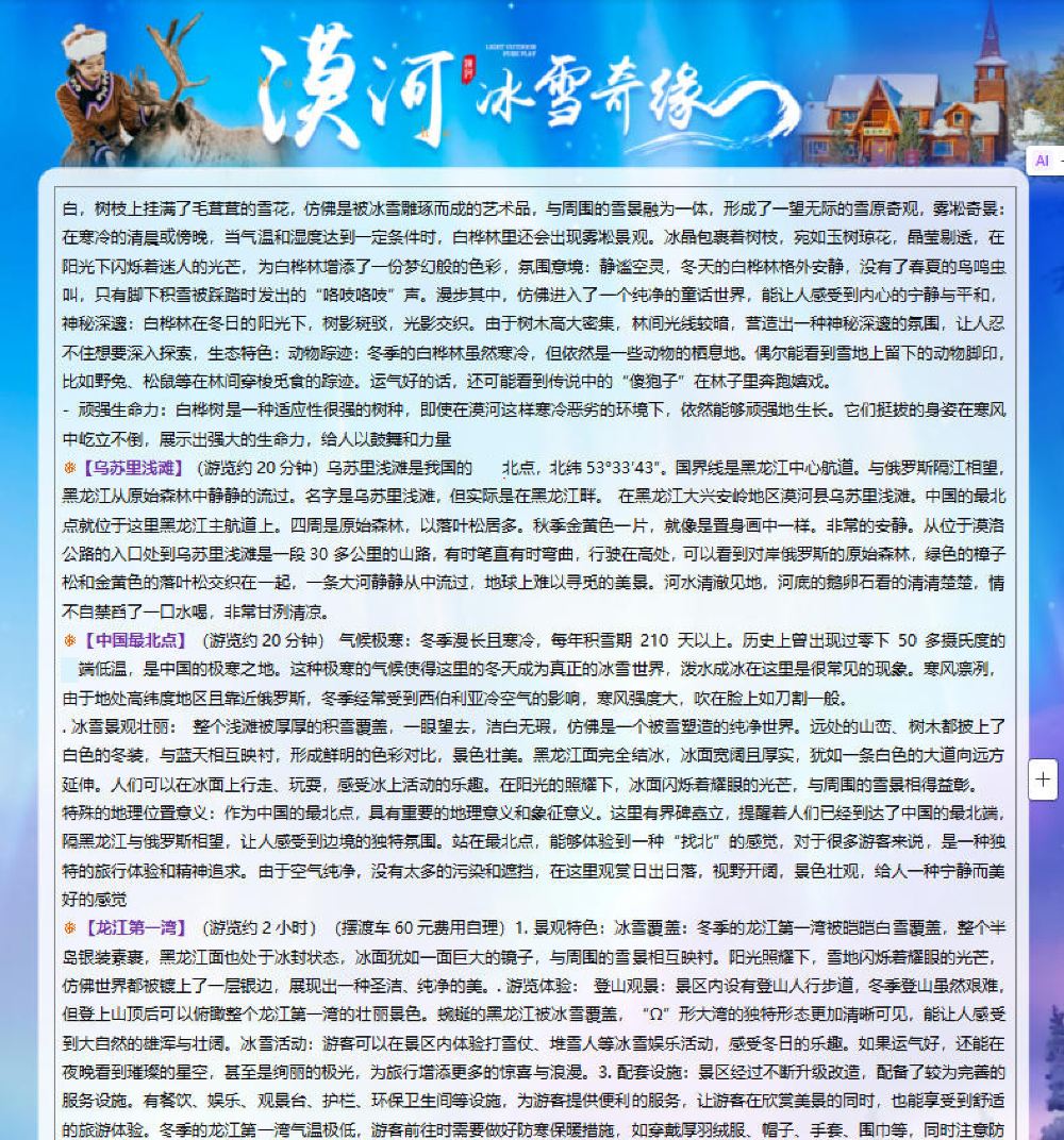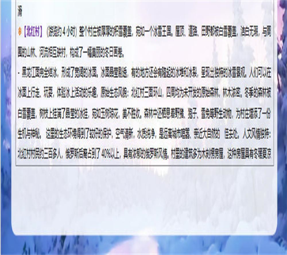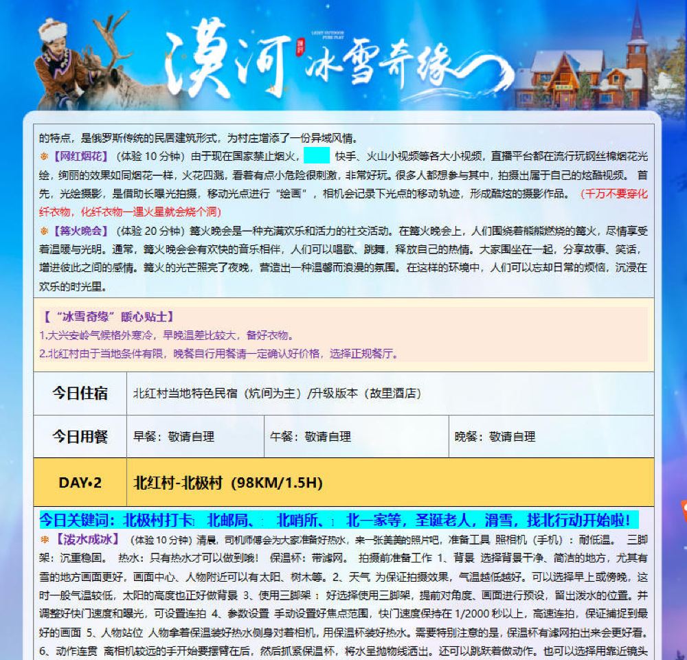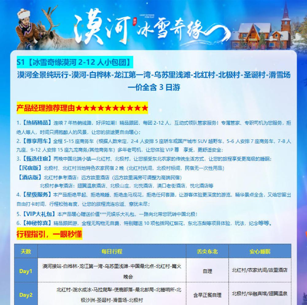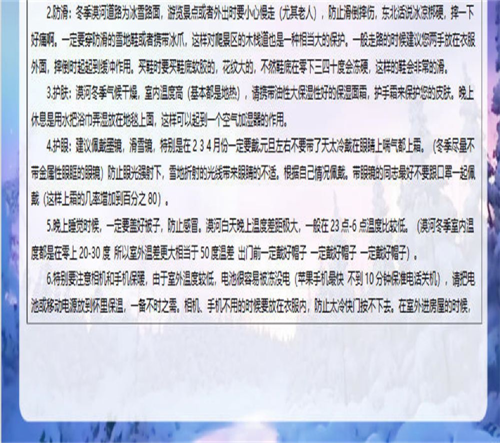 门票:龙江第一湾+电瓶车,北极村,漠河舞厅,鹿苑,圣诞村,滑雪场