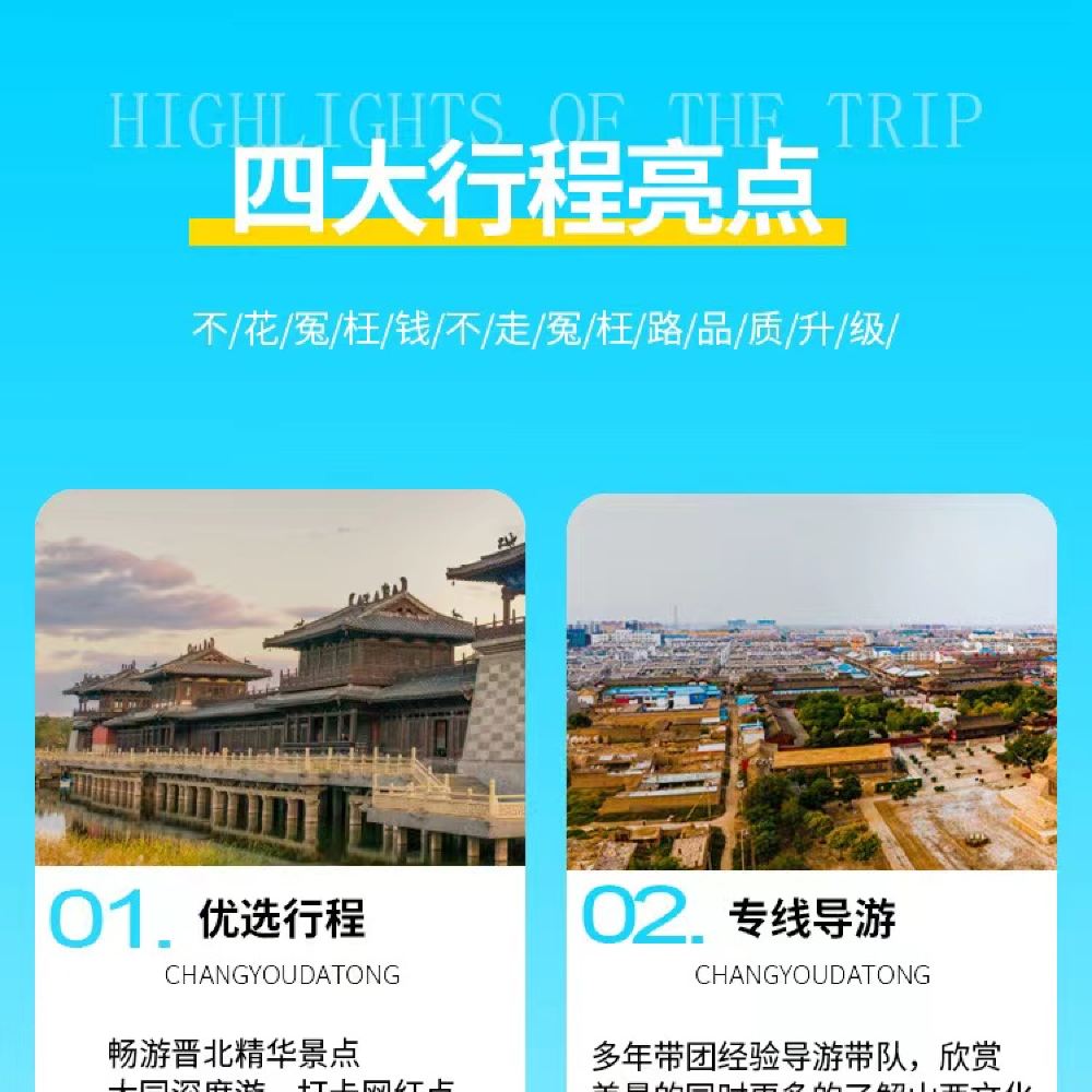 5.旅游的特殊性,不确定性。难免出现堵车,交通管制等问题,建议当天不要订往返大交通,若出现飞机火车高铁延误现状旅行社概不负责,敬请原谅!