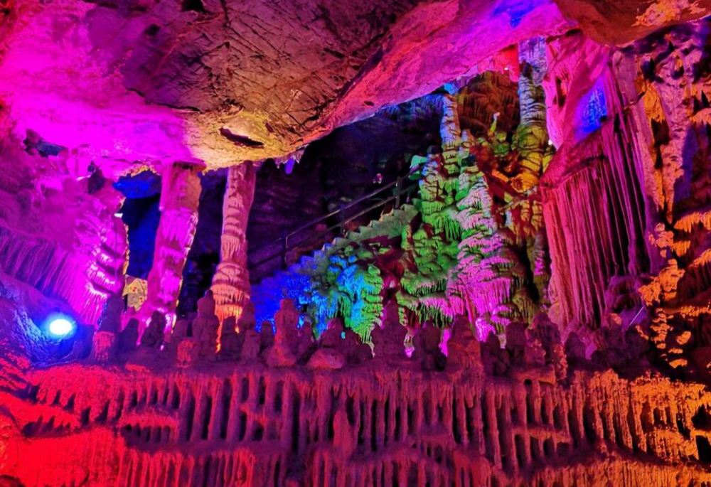▲ 洞内形态各异的钟乳石琳琅满目,绚丽多姿,石笋、石幔、石帷幕美不胜收。石禽、石兽、石猴、石佛维妙维肖,酷似逼真