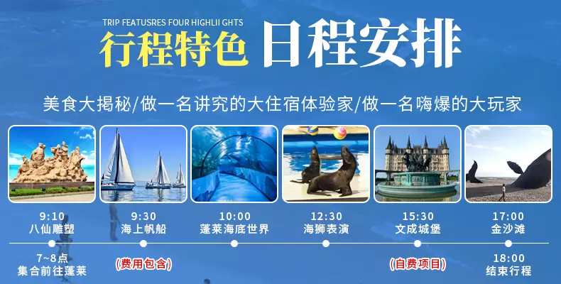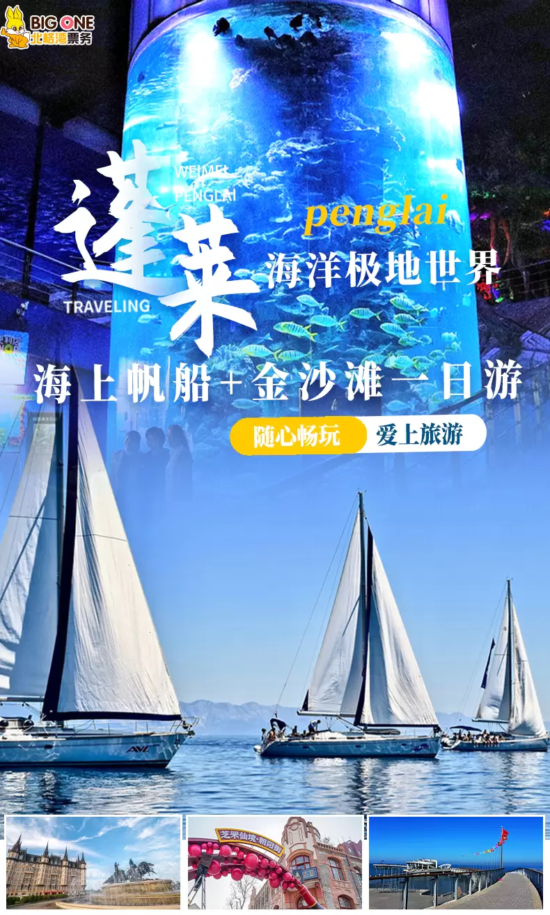 烟台蓬莱欧乐堡海洋极地世界+八仙雕塑+烟台金沙滩海滨公园一日游【烟台出发—激情冲浪|含帆船出海|纯玩无购物】