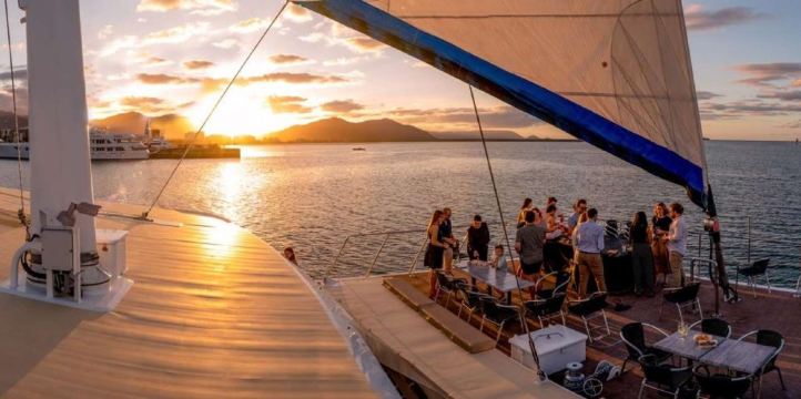 凯恩斯品悦号的夕阳晚餐之旅,将是您在结束一天劳累旅途的完美选择。在这艘刚刚花费 150万澳币重新装修过的双体帆船式游艇上,您将在波光粼粼的大海簇拥中,体验到纯正的西式海鲜自助晚餐,以及丰富的时令新鲜果盘。美妙隽永的现场音乐演奏相伴之下,您更可移目远眺神秘而静谧的大海,远处逶迤的群山,灯火妆点的绮丽海港夜景