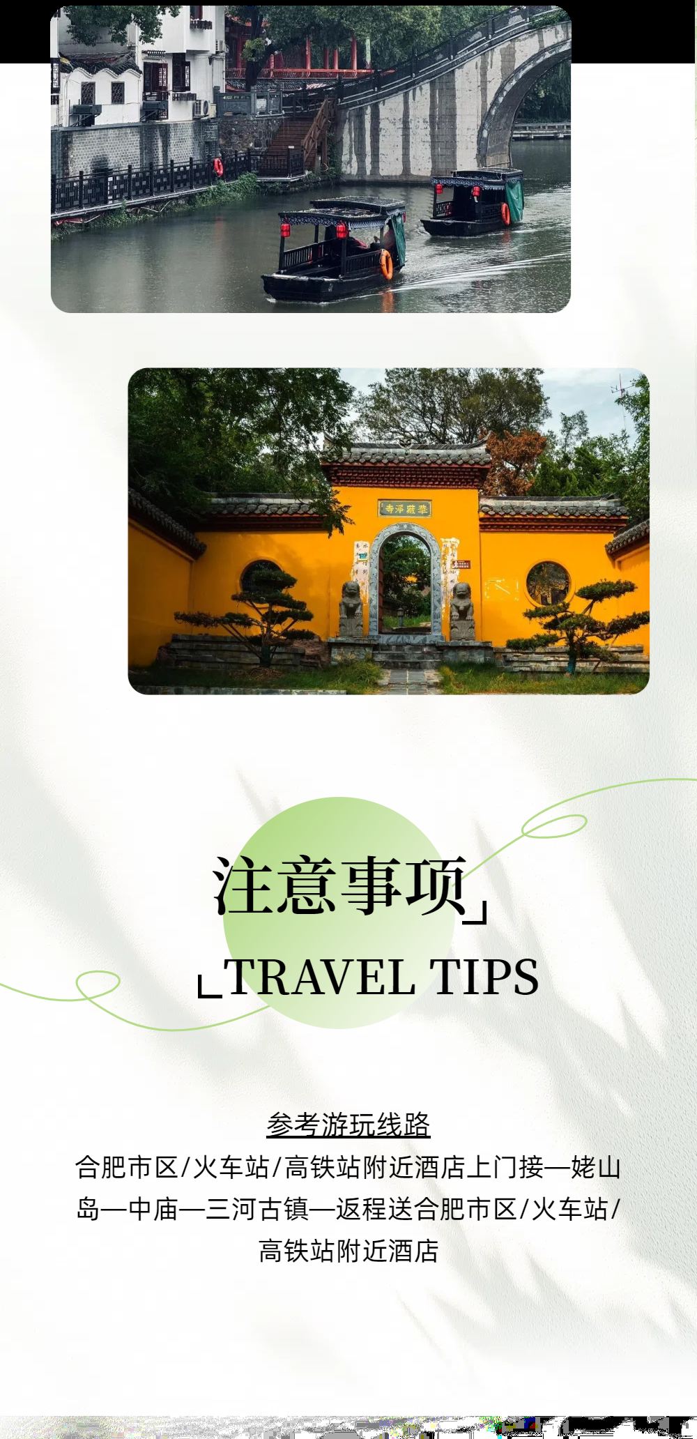 合肥出发巢湖包车9小时一日游|快速打卡姥山岛+中庙+三河古镇【湖岛古镇梵钟远,一日看尽巢湖韵。】