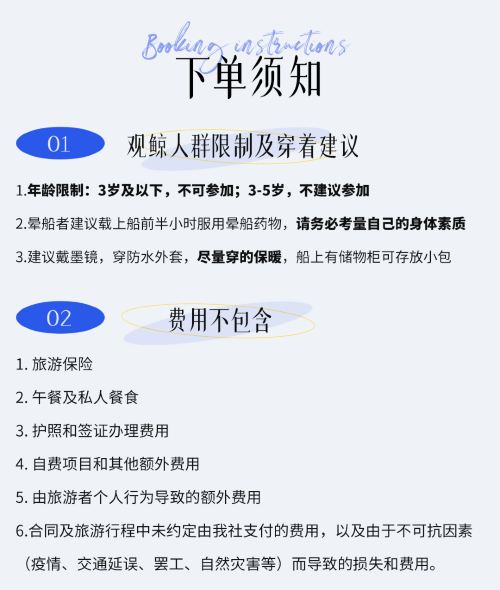 观鲸游船取决于当天海洋和气候条件(船长会在登记前10分钟告知是否出行)。若出行当天因风浪等天气因素而取消,我们退观鲸船票给您