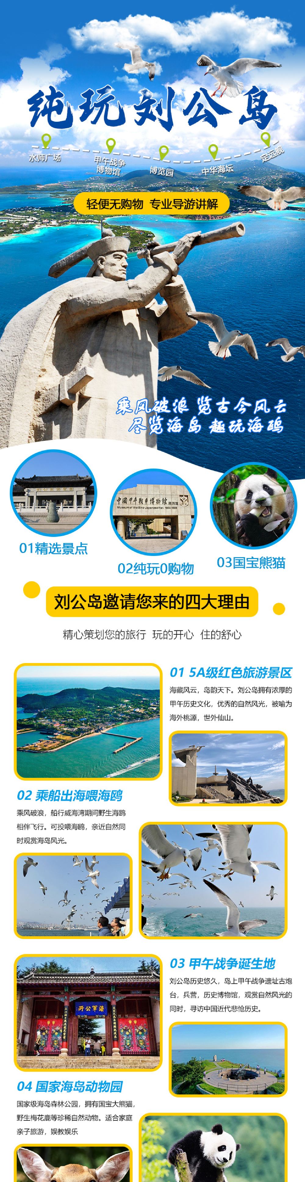 刘公岛景区+驱逐舰一日游【含往返船票|时间自由|帆船出海】【进岛需要乘船,途中有很多海鸥追赶,可以准备面包、油条、火腿肠等小零食投喂】