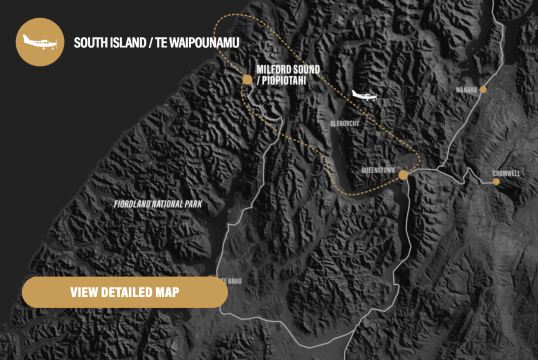 飞往米尔福德峡湾的途中,你将欣赏到许多秀丽风光。根据当天的飞行路线,可能包括:船长峡谷(Skippers Canyon)、格林诺奇(Glenorchy)、厄恩斯劳山(Mt Earnslaw)、图托寇山(Mt Tutoko)、米尔福德峡湾(Milford Sound)、米特峰、亚瑟谷(Arthur Valley)、萨瑟兰瀑布(Sutherland Falls)、米尔福德步道(Milford Track)、蒂阿瑙湖(Lake Te Anau)、绿玉谷(Greenstone Valley)和瓦卡蒂普湖。