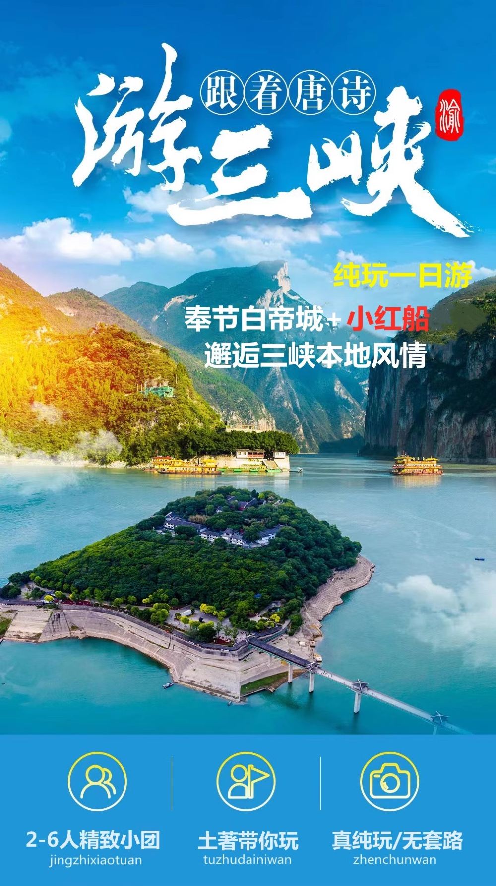 奉节出发 白帝城·瞿塘峡乘水上巴士体验三峡原始风情-巫山散团【2-8人小团/巫山散团/体验三峡原生态美貌】