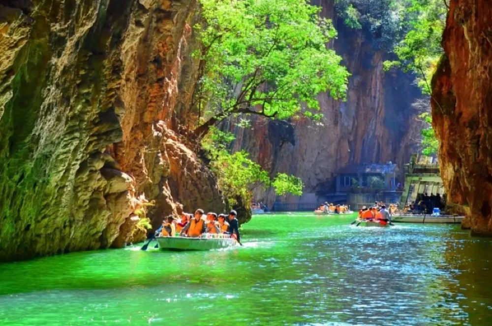 云南昆明:石林+九乡游船 一日游【穿越石林,探秘地下仙境】#【《峡谷轻舟探秘》乘坐荫翠峡游船,穿梭碧水之间,两岸峭壁如屏,藤蔓垂挂,沉浸式感受 “滇中第一幽峡”】