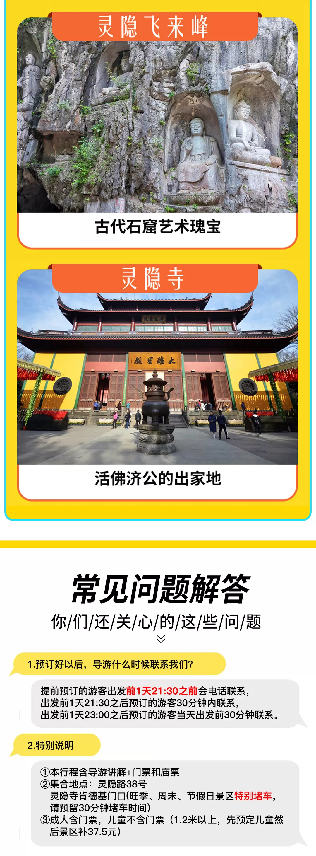 杭州灵隐寺+灵隐飞来峰景区+2小时深度讲解半日游【可选7:30/10:00/13:30·当地导游·15人小团】