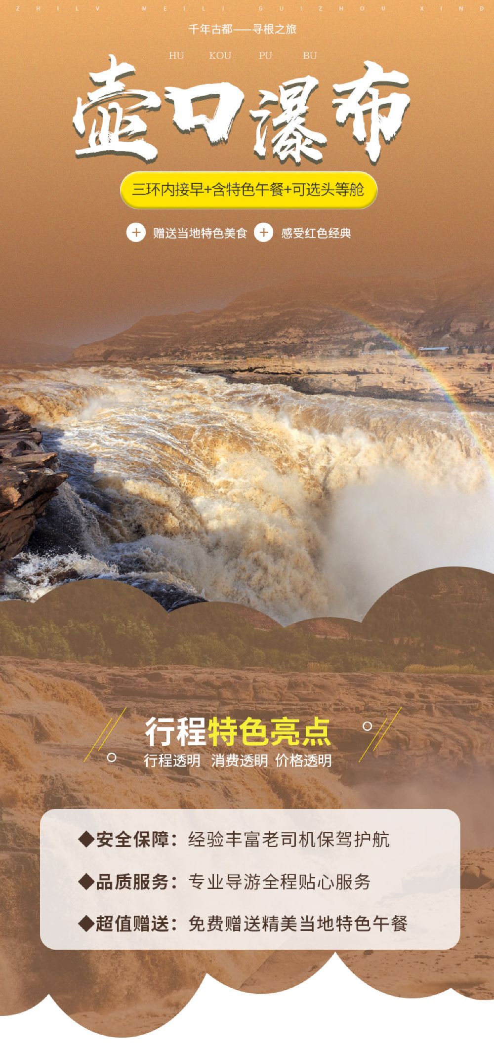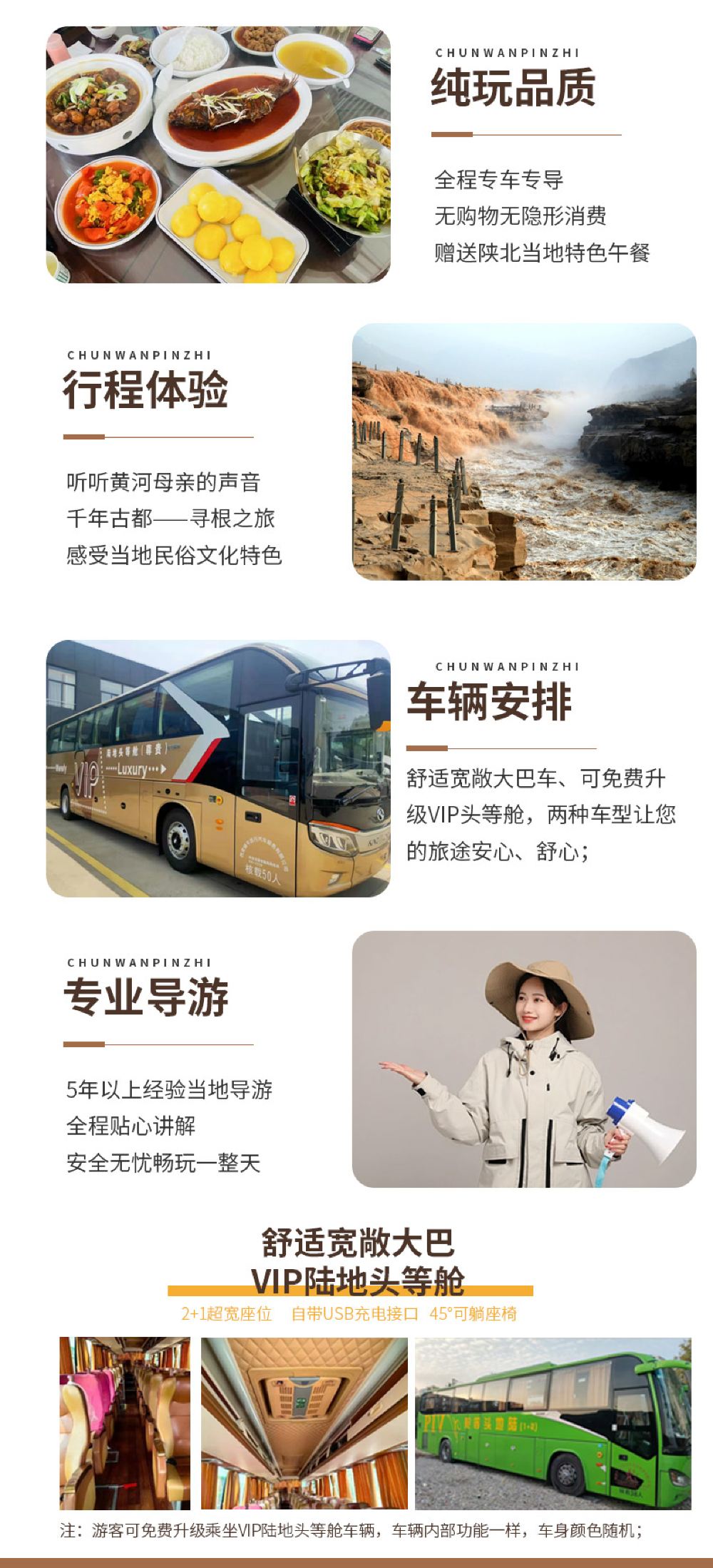 陕西壶口瀑布一日游【赠知青宴/免费升级2+1头等舱】【免费升级2+1头等舱和知青宴/原貌窑洞/三环内接早】