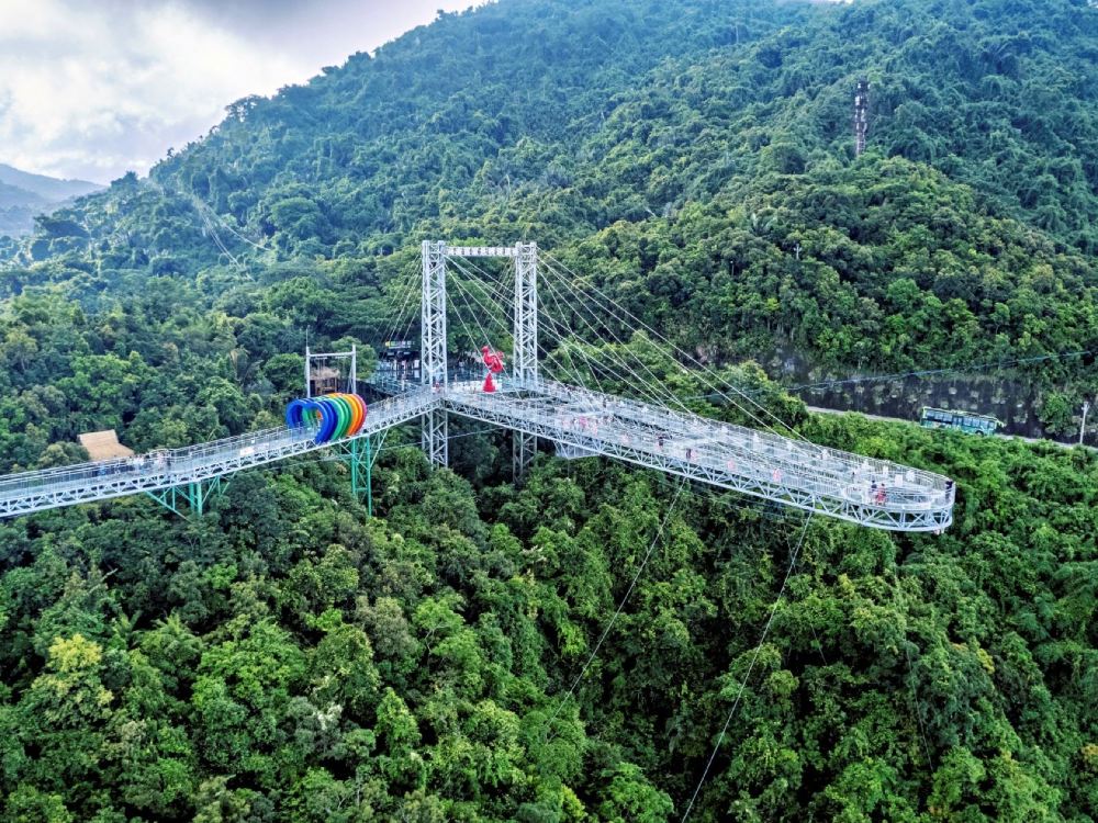 ▲ 呀诺达热带雨林坐落在北纬18°原生态热带雨林之上,年均气温24℃,负氧离子每立方米含量达两万,是名副其实的“天然氧吧”,也是原生态的“植物基因库”。优越的气候与地理环境,孕育了一个绮丽的绿色雨林秘境。园内有雨林谷景区、三道谷、梦幻谷等标志性景观,苍翠绵延,多姿多彩,大自然的纯璞与奇特蕴含其中。