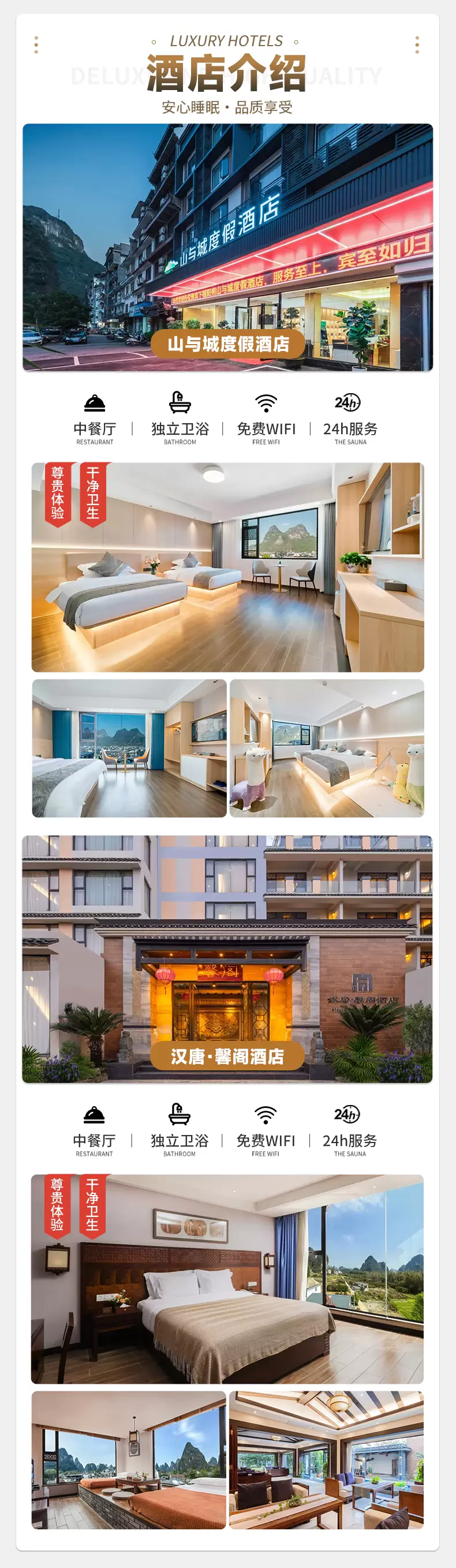 【酒店套餐】阳朔豪华型酒店多店可兑+双人·印象刘三姐/千古情/如意峰/遇龙河竹筏4选1+双早