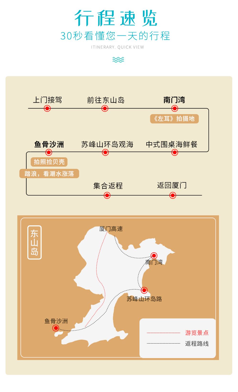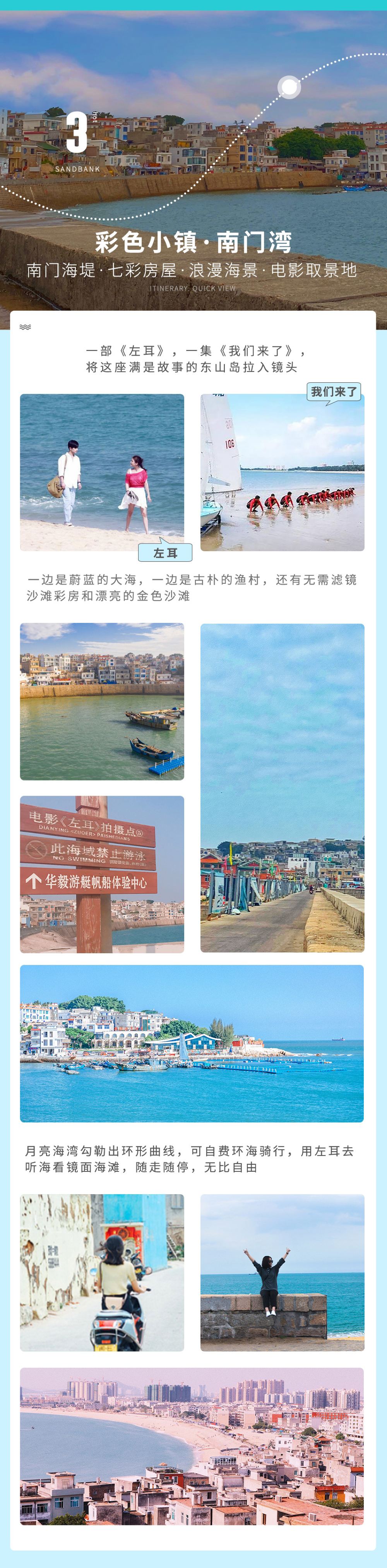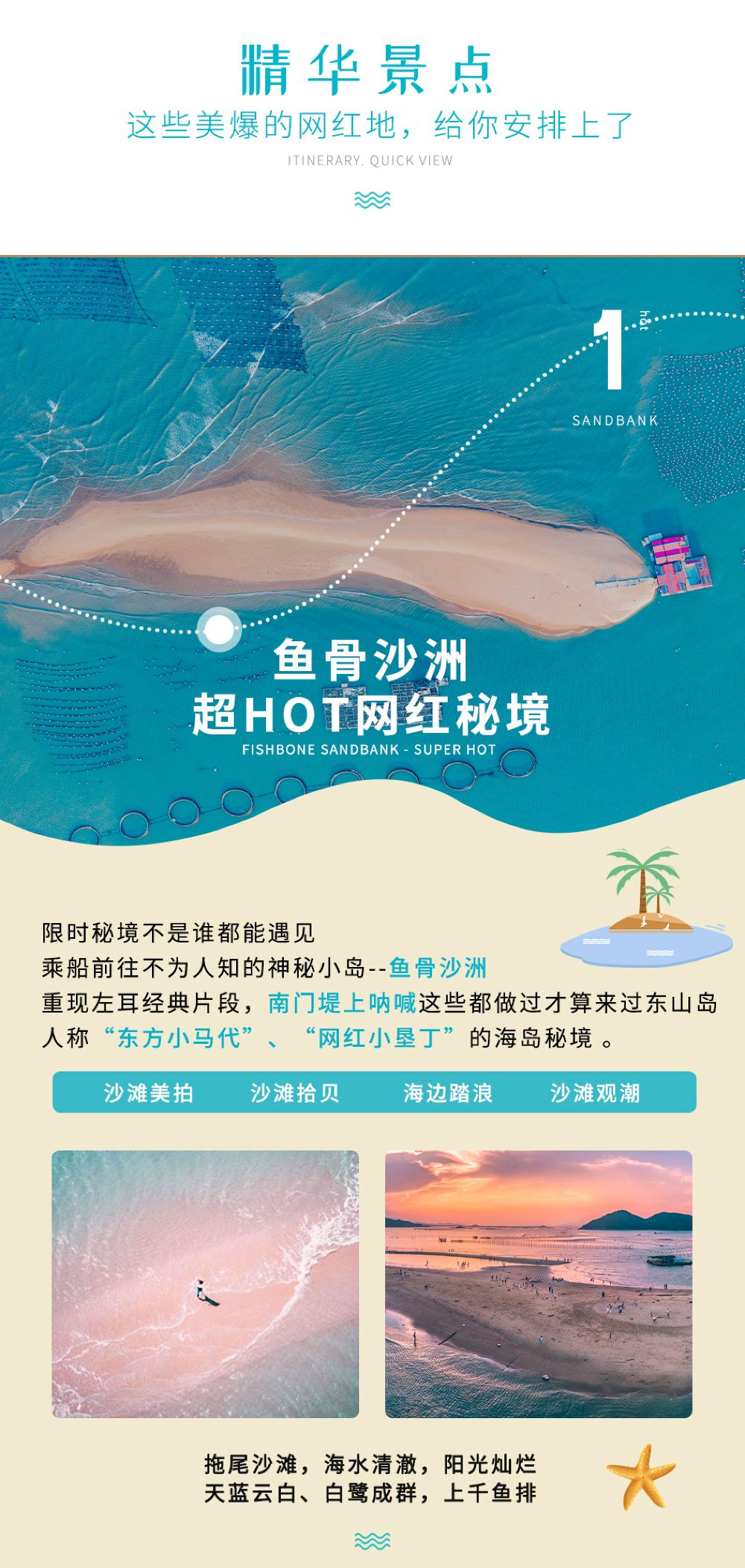 A线:东山岛+苏峰山+南门湾+鱼骨沙洲(鱼骨沙洲退潮后大海中间会出现一个像鱼骨形状的沙滩)