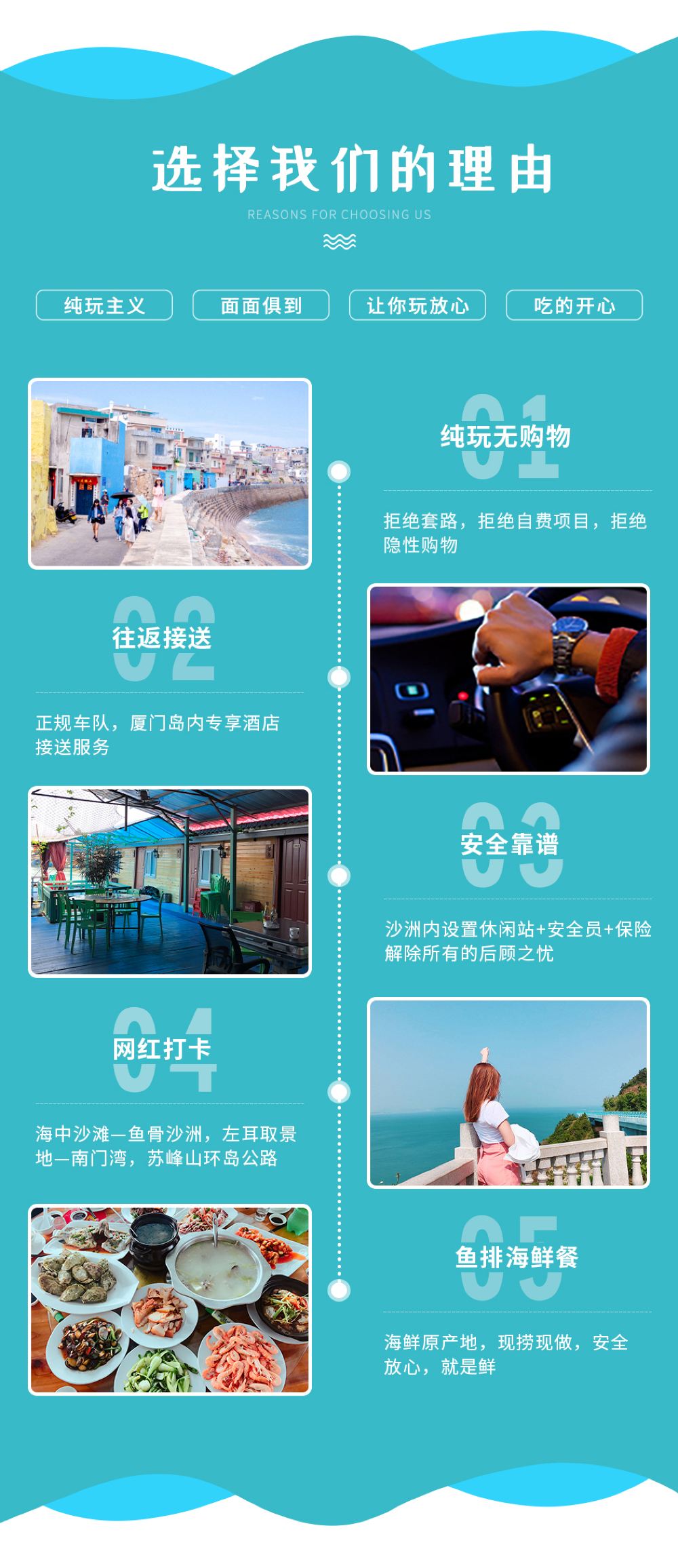 注意事项:若因天气或其他不可抗因素致鱼骨沙洲无法上去,将安排退差价并调整行程为鱼排,具体以实际安排为准 。