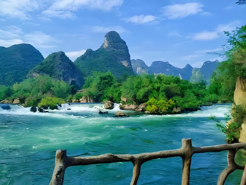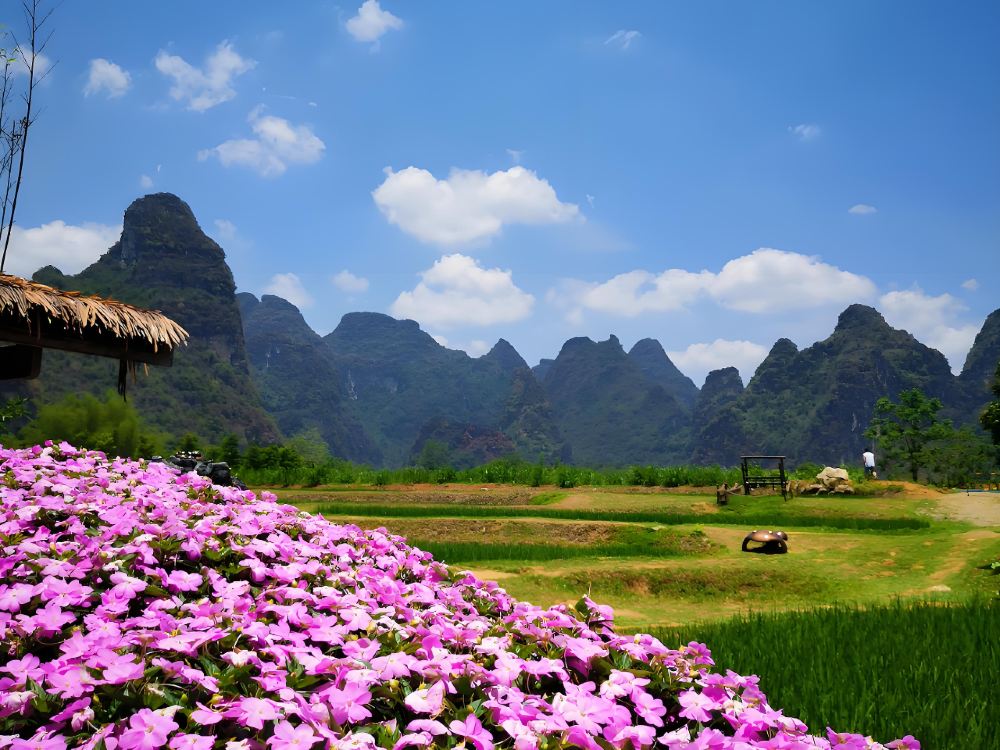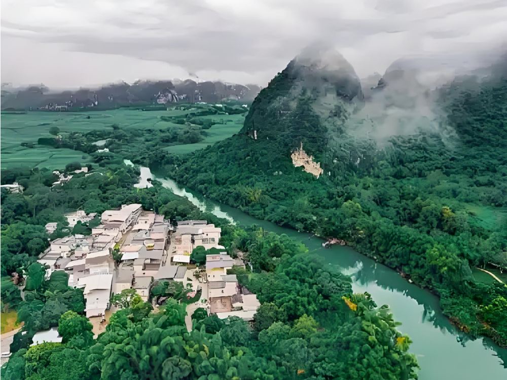 ▲ 喀斯特峰丛环绕、良田与村落交织、河湾小岛点缀