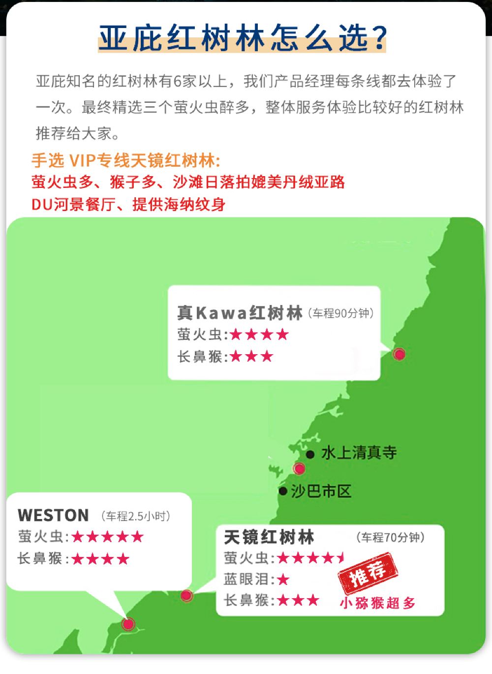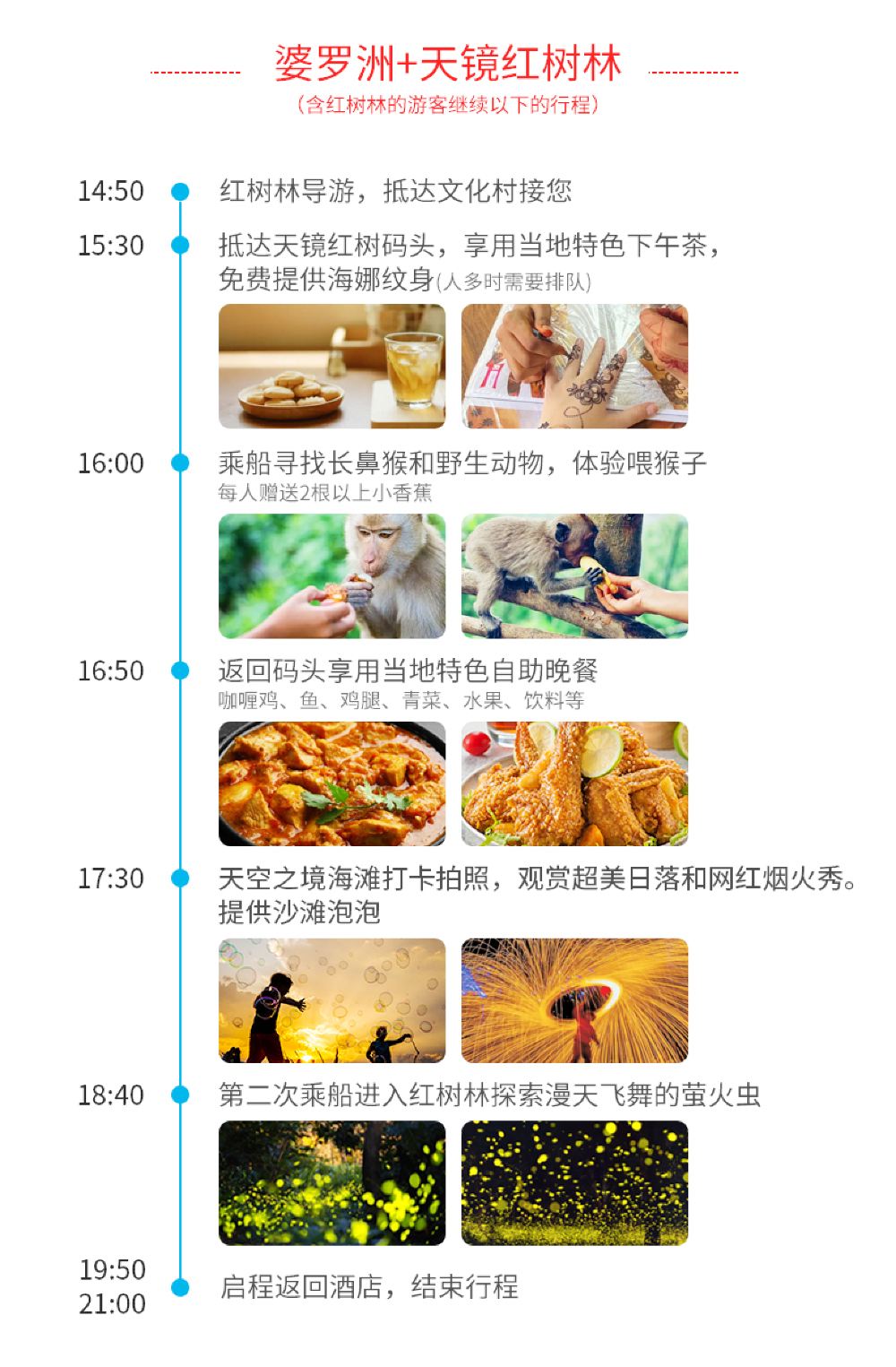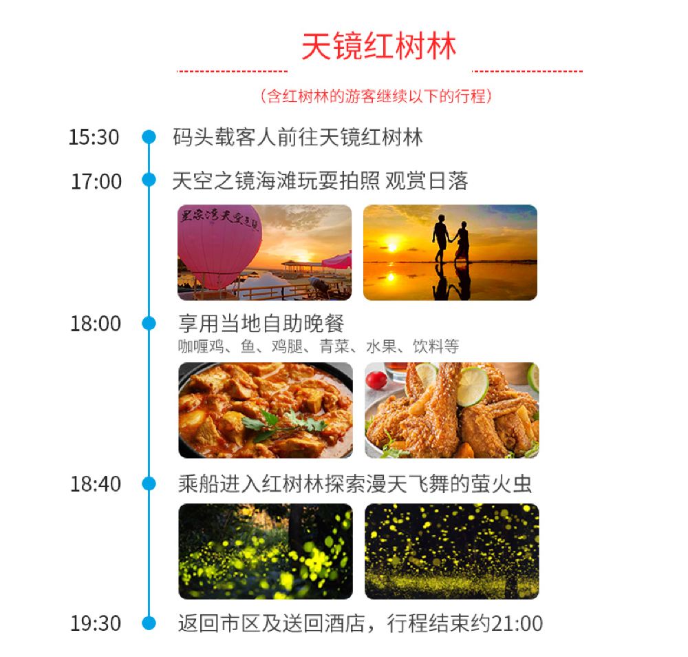 沙巴亚庇天镜红树林半日游萤火虫长鼻猴环滩岛婆罗洲文化村一日游【VIP自营专线天镜红树林,提供沙滩泡泡、网红烟火秀,海娜纹身】