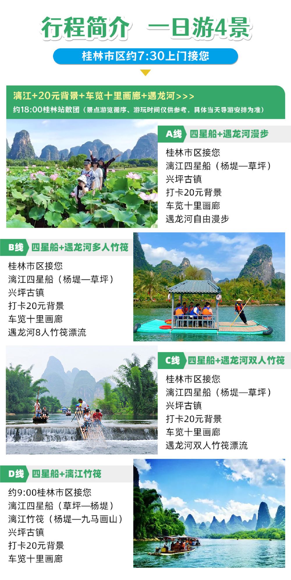 桂林阳朔一日游丨四星船游漓江·遇龙河竹筏+20元背景+多套餐【四星船游漓江丨遇龙河玩法可选【漫步·双人竹筏·8人漂】】