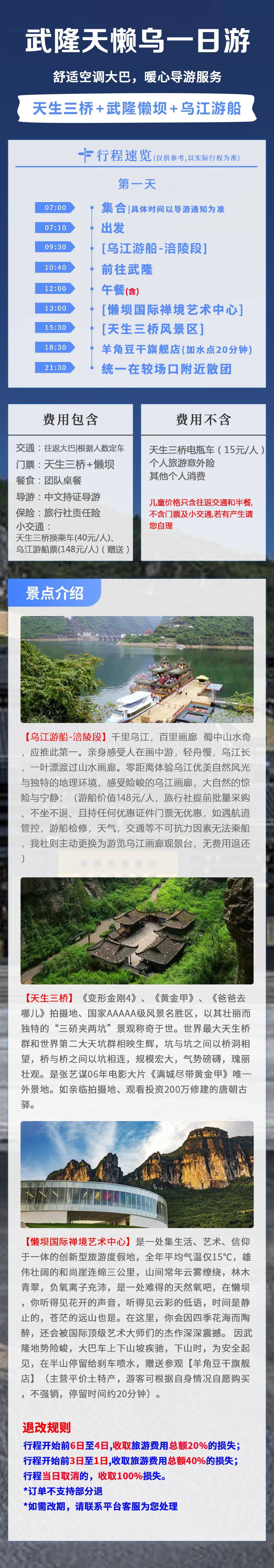 重庆武隆天生三桥+懒坝国际禅境艺术度假区+乌江游船一日游【【无忧出行】此套餐包含景点门票和往返车费 无隐形消费】