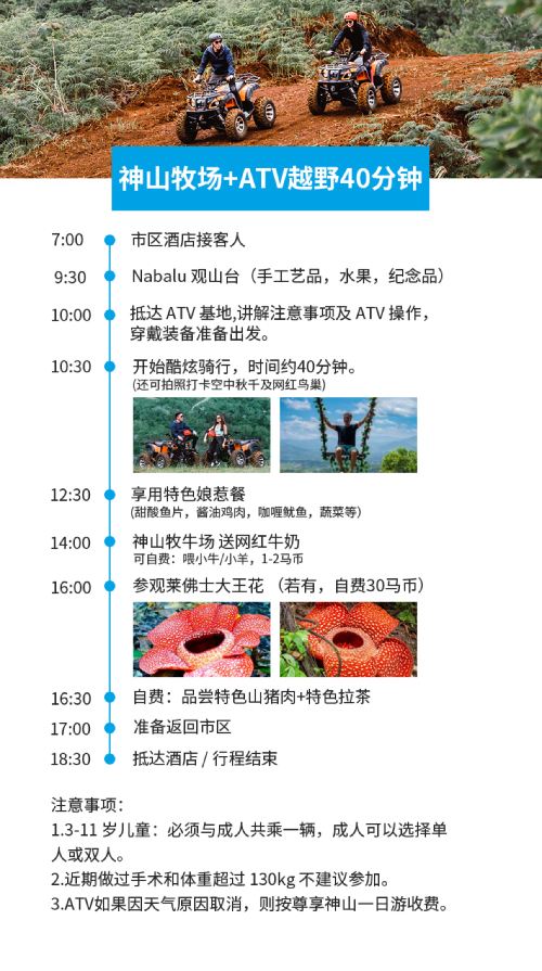 马来西亚沙巴神山国家公园一日游亚庇滑翔伞神山牧场单人ATV【送送送,尊享套餐 赠送ATV越野体验10分钟】