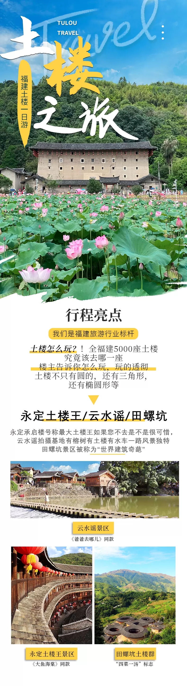 【漳州出发】南靖云水谣古镇/永定土楼/田螺坑土楼群一日游 纯玩无购物 一价全含 南靖土楼多套餐可选