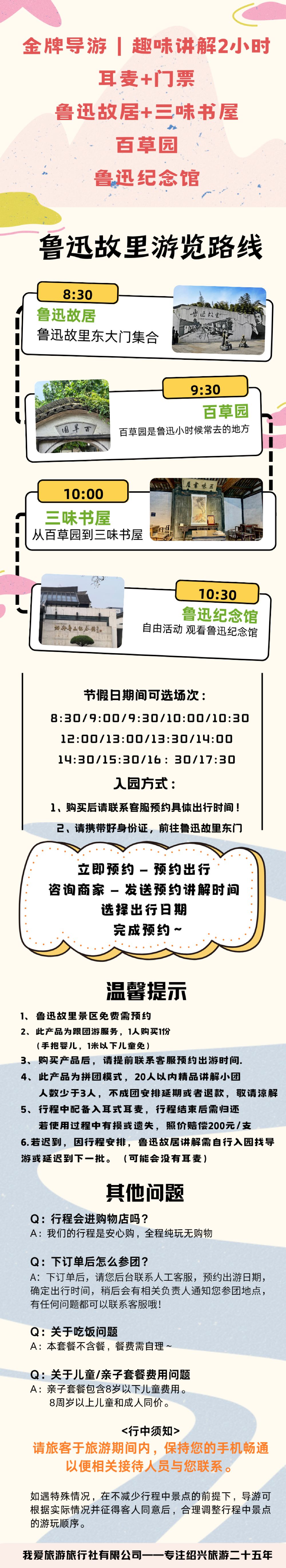 鲁迅故里|资深讲解小团+预约票+2小时金牌导游人工讲解+耳麦【国庆可用|资深导游鲁迅故里深度讲解2小时】