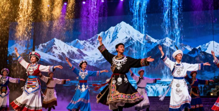 ▲ 《丽水金沙》是丽江一台极具民族特色的旅游歌舞晚会