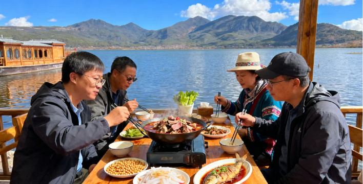 ▲ 人文景观:拉市海是茶马古道的重要驿站,游客可以骑马沿茶马古道前行,感受马帮文化。此外,景区周边还有纳西族等少数民族村庄,能体验到浓郁的民族风情。
