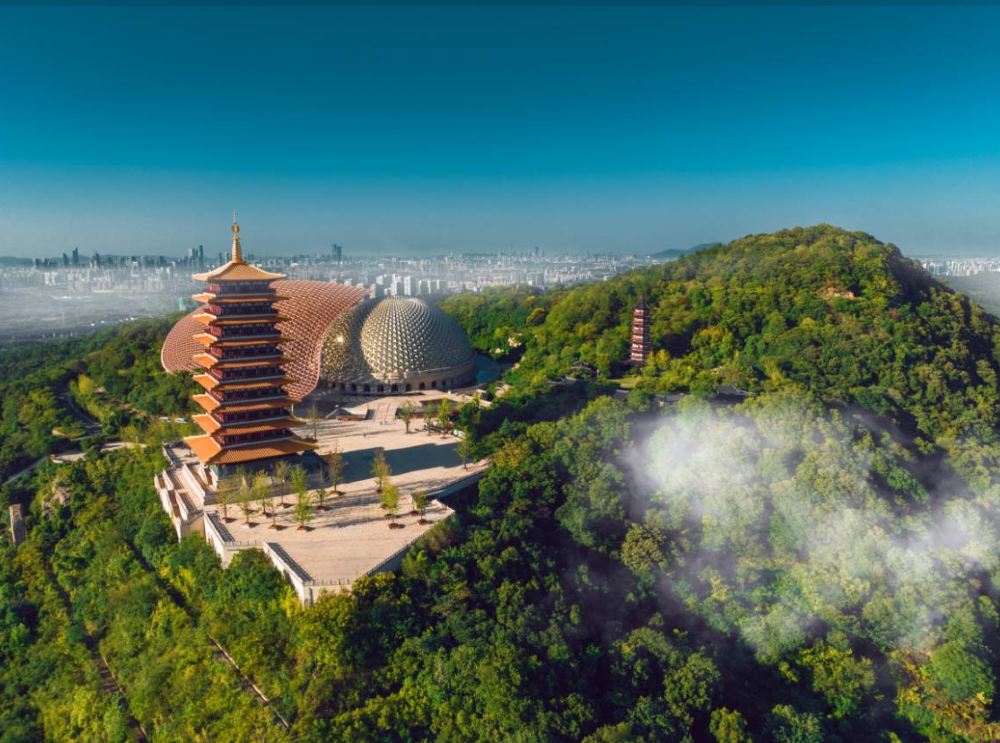 ▲ 到牛首广场观赏七星指路、风铃塔等;沿着含有春、夏、秋、冬主题游览的天阙路到达佛顶寺,佛顶寺坐落于牛首山东峰东南侧坡地,是佛顶骨舍利护持僧团的弘法道场;继续游览到达佛顶圣境,外部观赏佛顶塔;进入佛顶宫,佛顶宫是佛顶圣境的核心建筑,外部分为大穹顶和小穹顶两个部分,寓意外供养和内供养,内部由地上部分的禅境大观和地下部分的地宫构成,其中地宫分为舍利大殿和舍利藏宫两个空间;在禅林路漫步,游览吟龙湖,体验生态休闲景观