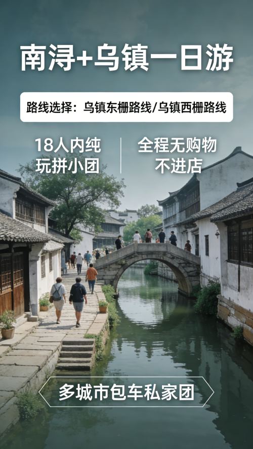 纯玩水乡乌镇+南浔古镇一日游(2-18人团)可选东栅or西栅【匠心打造之旅,承诺无购物无强制消费,真正纯玩一日游】