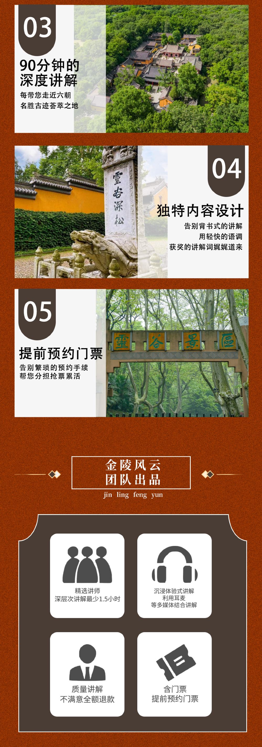 4.除灵谷景区门票和人工讲解费以外,个人往返的交通费,餐食费等一切费用均不包含。