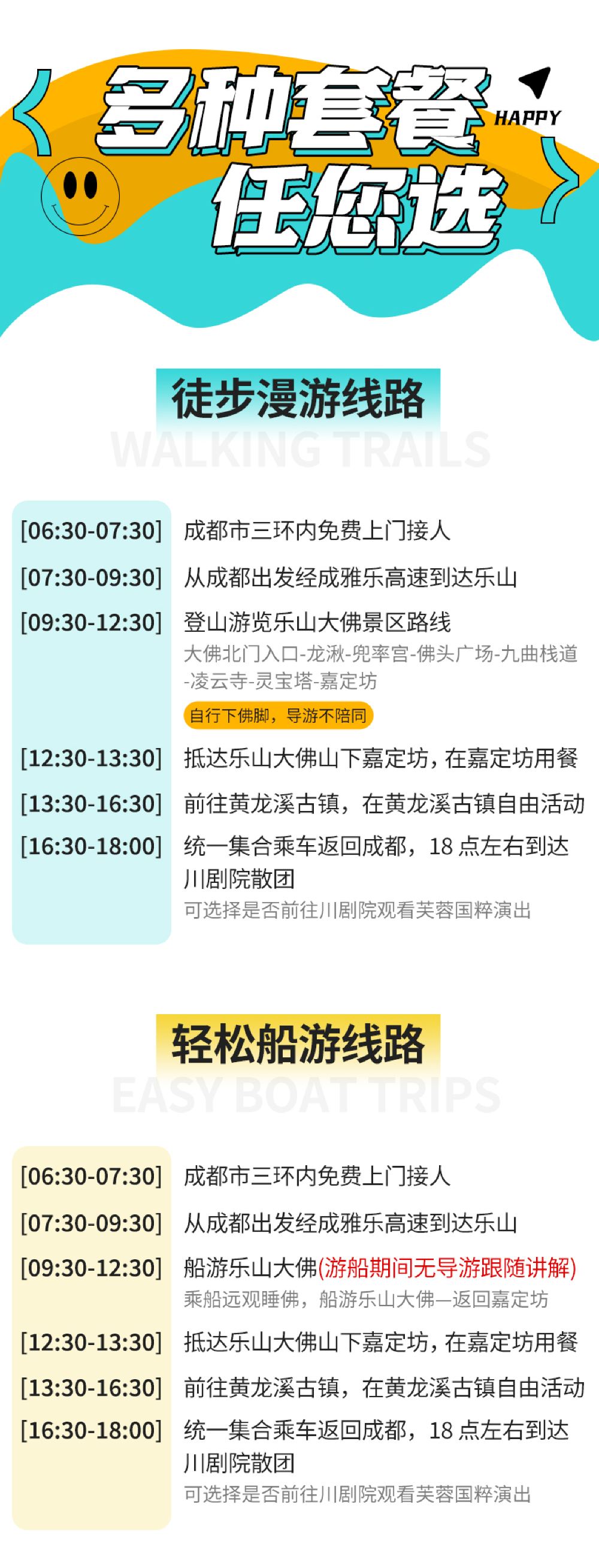 乐山大佛+黄龙溪古镇一日游 船游&登山丨可选川剧晚会表演【10点晚出发丨可选“川剧晚会表演”丨徒步登山/悠闲船游丨纯玩无购物丨国旅保障】