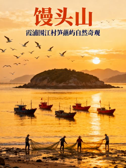 “馒头山”位于福建省宁德市霞浦县沙江镇围江村,“馒头山”正名“笊蘺屿”,在围江海带村的近海处,与海带村相连,在涨潮时远远望去像个馒头的形状,故称“馒头山”。馒头山四面环海,退潮时,滩涂环抱着它,显得那样静谧深远;涨潮时,海水围绕着它,又充满了勃勃生机。据说,每当朝阳升起,大海泛出金黄色,染红了渔船,染红了觅食的海鸥,也染红了赶海的渔民,美轮美奂,十分壮观。又称情人岛,因传说一对情人在海水未涨潮时登上馒头山,涨潮后小路被淹没,他们就在岛上度过浪漫的二人世界。在这里拍日出是美好的打开方式,不过涨潮前也是挺有一番味道。