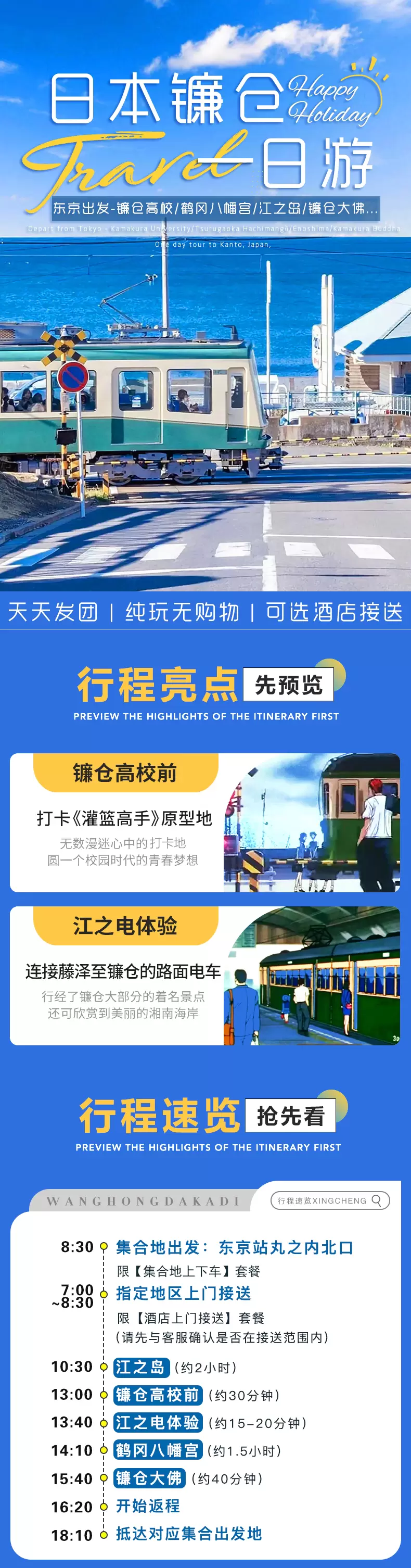 东京镰仓高校前站+镰仓大佛+鹤冈八幡宫+江之岛一日游【9人团可选|赠江之电体验|灌篮高手巡礼|中文服务】