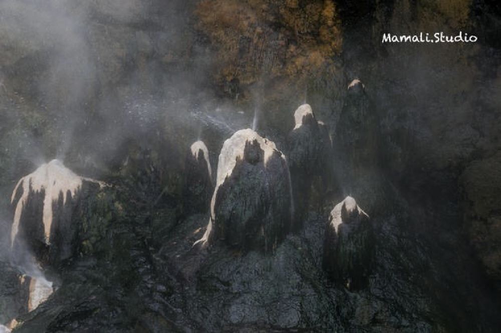 这些温泉、汽泉,按化学万分来分,又可分为碳酸泉、硫磺泉、硫酸泉等。在碳酸和硫磺泉区,草木茂盛,一片青绿;而硫酸泉区,一片长约80米,宽约40米地地面内,热气腾腾,到处是嘶嘶的响声,地表砂石裸露,寸草不生,人们不敢涉足,成为天然“禁区”。
