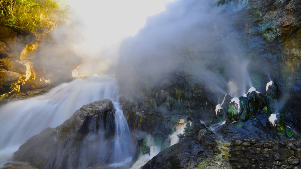 腾冲是中国有名的地热风景区,全区目前发现有64各地热活动区,温泉群达80余处,水温可达96.3℃。其中热力猛、外部显示也很奇妙的便是镶嵌在城西约20公里的腾冲热海。这里青山环抱,一水喧腾,在北起硫磺塘,南接松山箐,东到忠孝寺,西连芭蕉园,面积约9平方公里的范围内,各种地热景观类型丰富。目前开发了大小滚锅、哈麻嘴、美女池、狮子头、珍珠泉、鼓鸣泉、怀胎井、仙人澡堂及澡堂河瀑布等十余个景点。