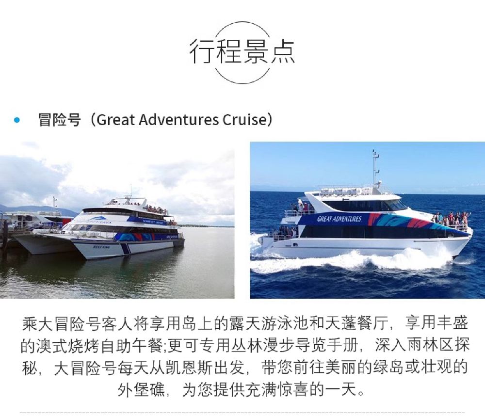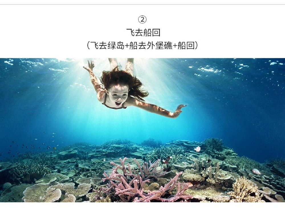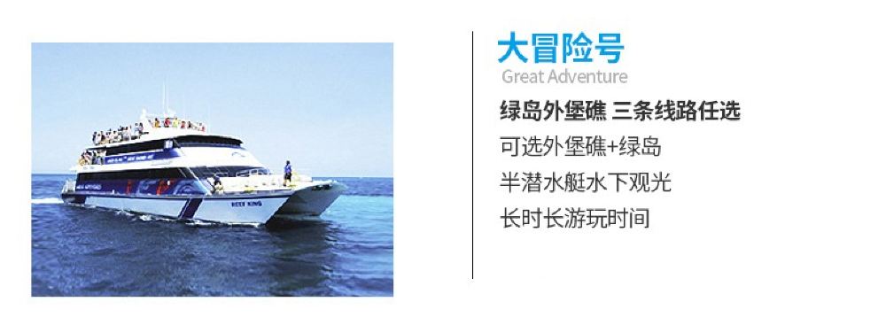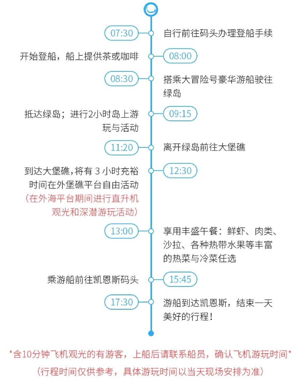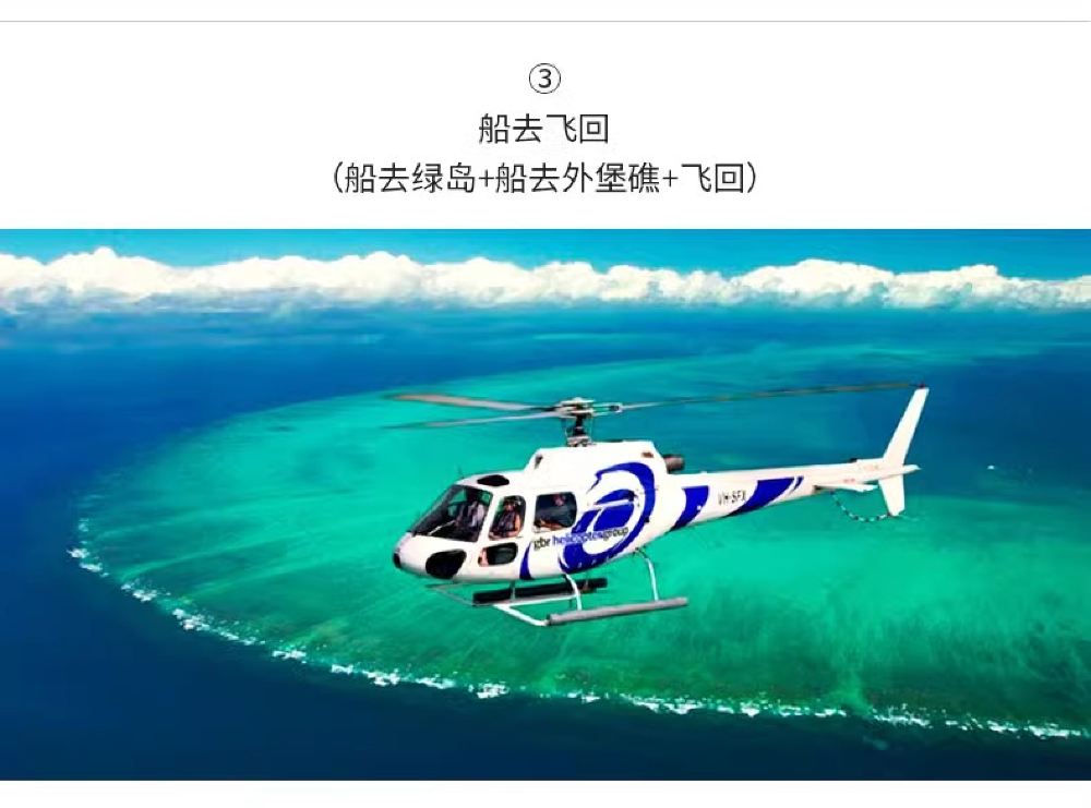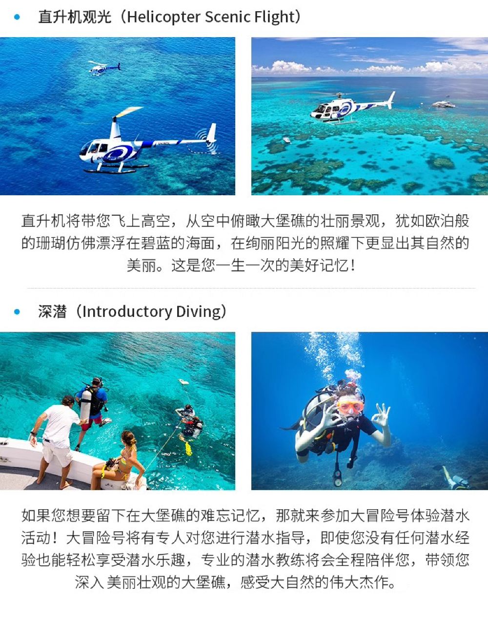 凯恩斯大冒险号大堡礁+绿岛一日游【官方直连·直升机浮潜深潜】【外堡礁高空+水下观珊瑚:直升机、海底摩托车、半潜水艇、浮潜】