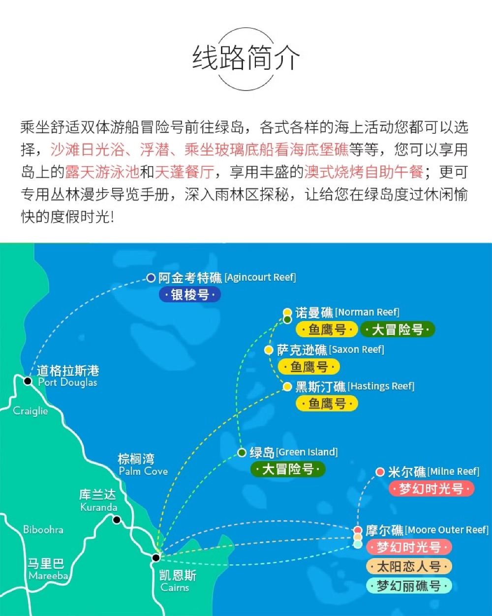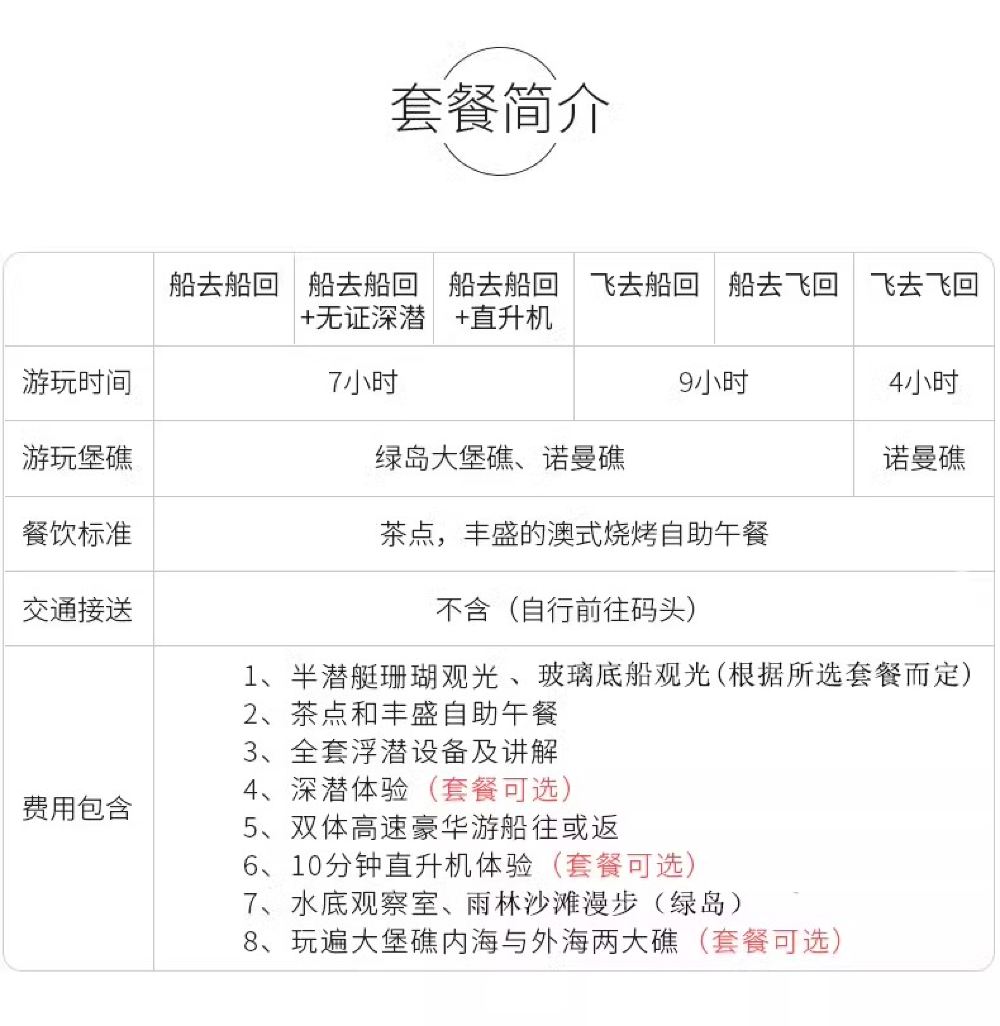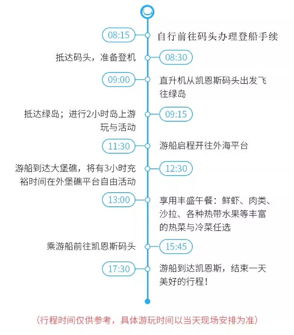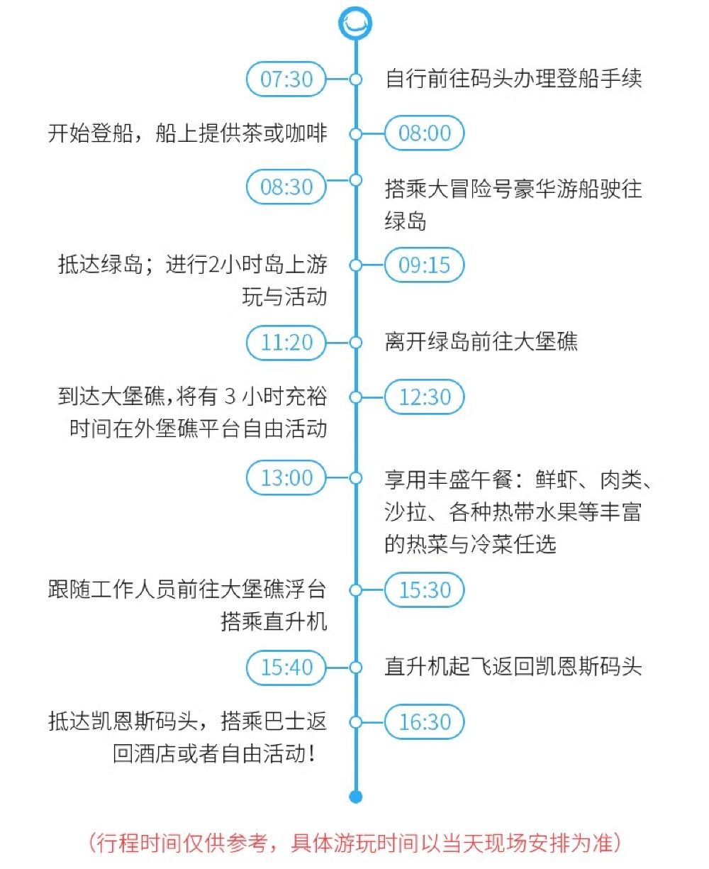 凯恩斯大冒险号大堡礁+绿岛一日游【官方直连·直升机浮潜深潜】【外堡礁高空+水下观珊瑚:直升机、海底摩托车、半潜水艇、浮潜】