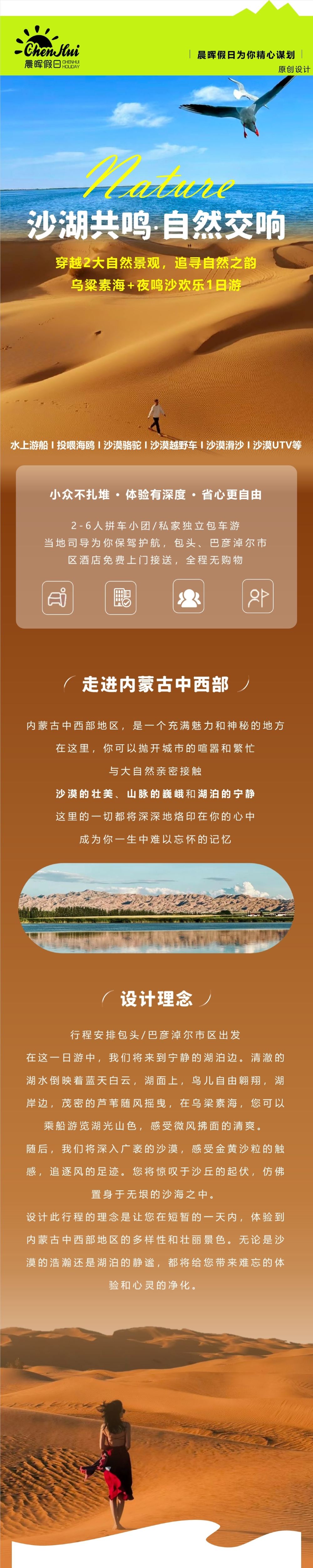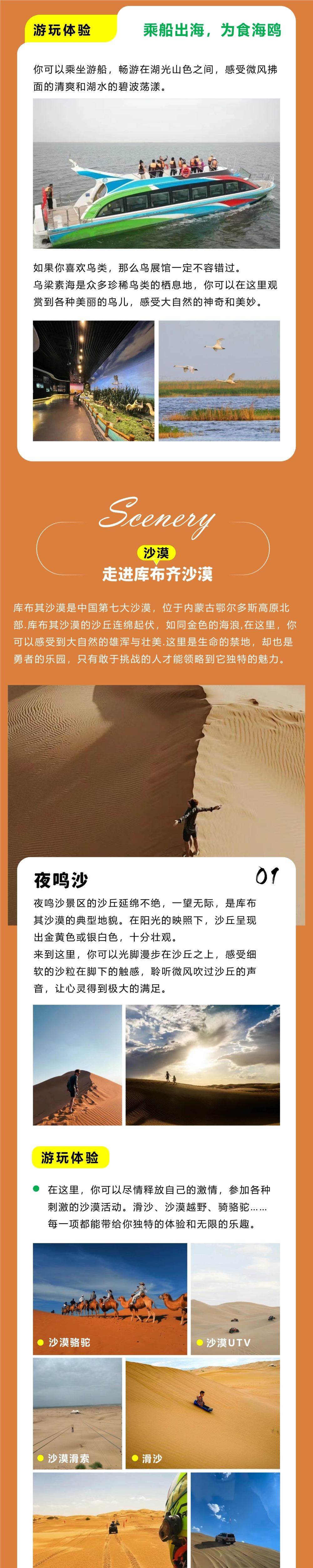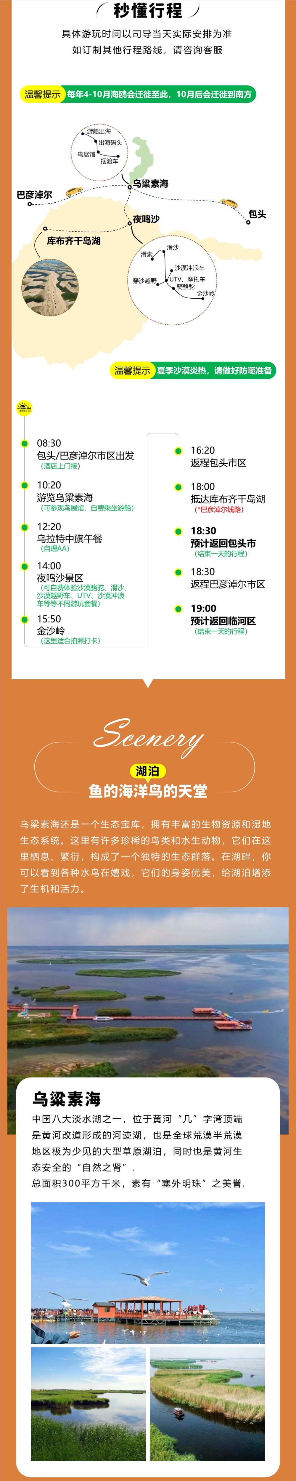乌粱素海+夜鸣沙+金沙岭+库布齐千岛湖一日游【可选2-6人精致小拼团,或私家独立包车游 (多种车型选择)】