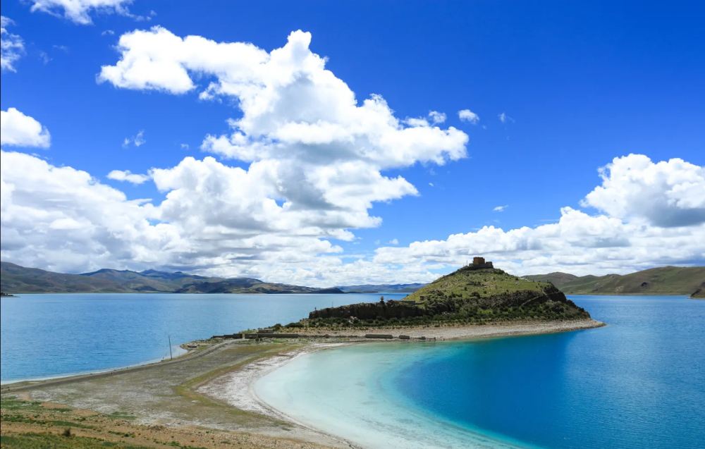 ▲ 【日托寺—— 湖边“孤独的修行者”】 一座700年历史的寺庙,独自立在羊湖心的小岛上,被网友称为“孤独的寺庙”。️ 爬上去要20分钟,但视角绝了——360°被蓝湖包围,安静得只能听到风声和经幡飘动的声音。 拍照指南: 1.用长焦从远处拍寺庙+湖面,构图绝绝子。 2.无人机友好(注意风速),但别打扰修行僧人。 ️ 注意: 后面一段是土路,越野车才能上,普通包车上不了,请知悉。 寺庙内部偶尔开放,随缘参观,记得脱鞋和轻声说话。