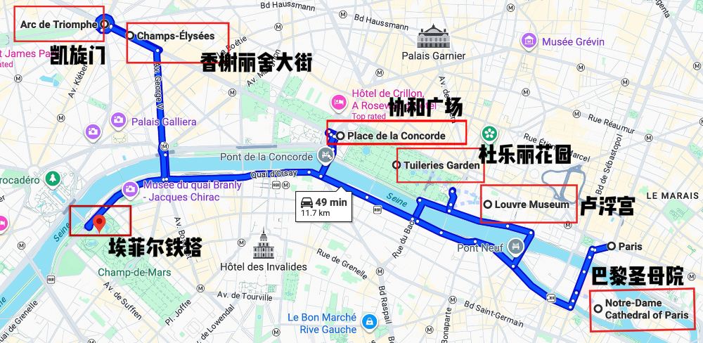 巴黎圣母院+卢浮宫+香榭丽舍+凯旋门+埃菲尔【巴黎包车1日】【专车上门接送|1单1团|时间自由|行程可调|接受定制】