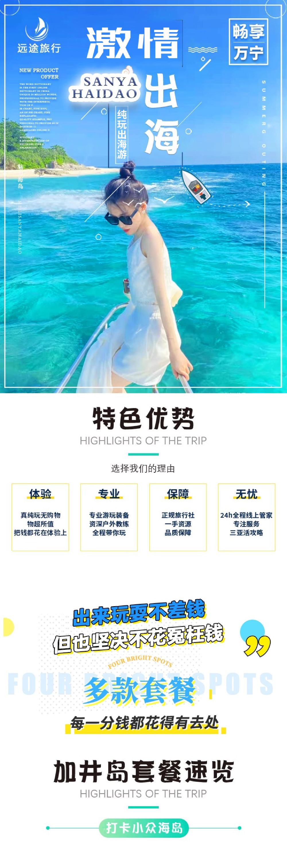 B套餐:万宁石梅湾加井岛沙滩户外一日游(1.2米以上按成人价,1米-1.2米按儿童价,1米以下儿童免费)