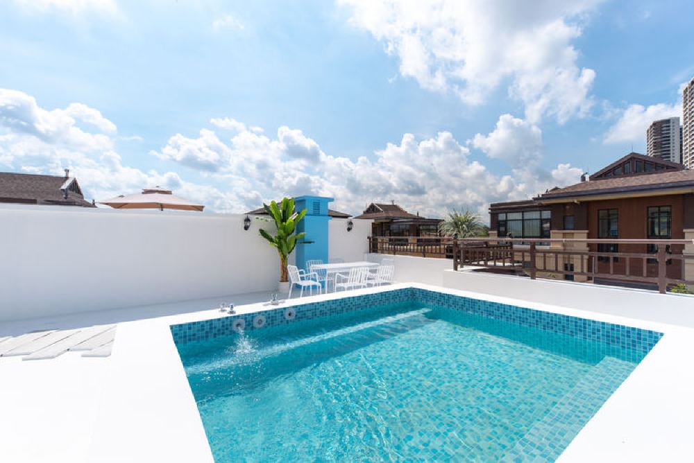 惠州南昆山马尔代夫5房8床温泉泳池别墅+KTV+泡池+麻将【南昆山网红泳池温泉别墅,5房8床,可容纳8-16人左右,冰箱、自动麻将、碳烤炉KTV,一应俱全。】