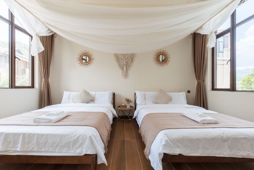 别墅:3层350平,5房8床2厅5卫,全套房,可住16人。